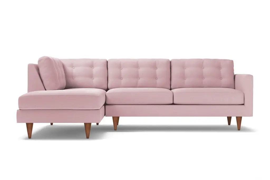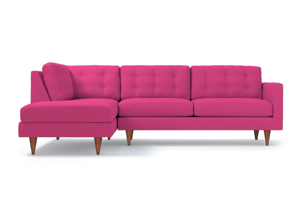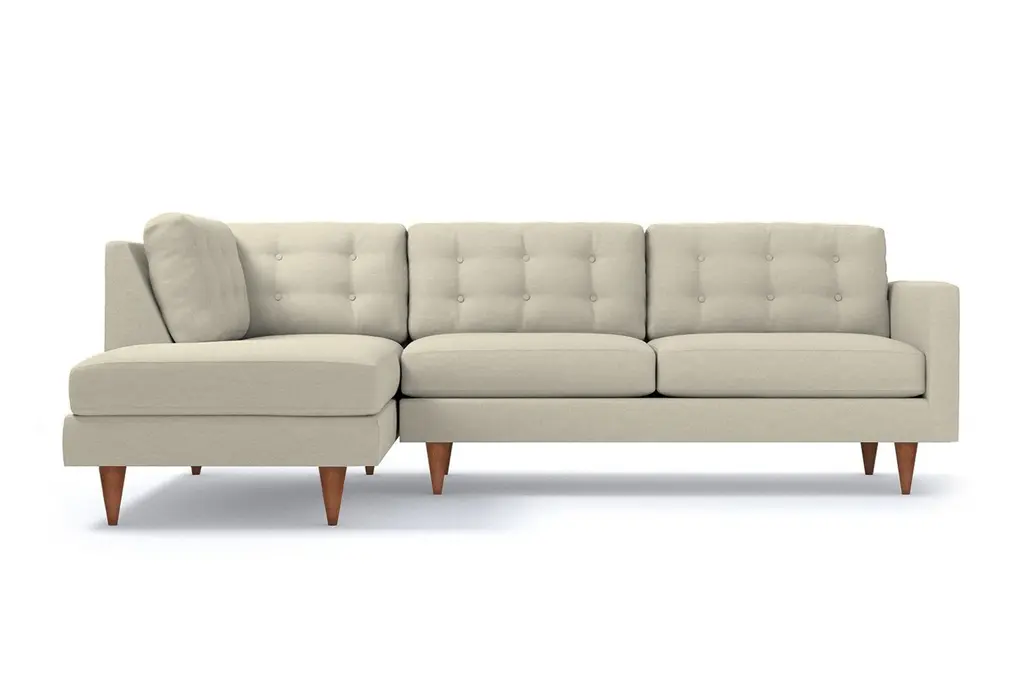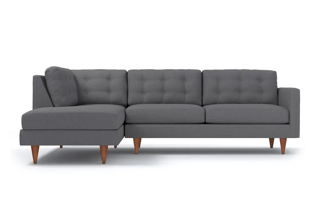 Looking for a two-piece sectional that radiates refined, modern style? Upgrade your living room with the elegant Logan 2-Piece Sectional Sofa from Apt2B. This sophisticated two-piece sectional evokes the style of old Hollywood glamour with its button-tufted back cushions and tapered wooden legs. Part of famed interior designer Kyle Schuneman's line and exclusively sold at Apt2B, the Logan is luxurious comfort at its very best. Perfect for entertaining guests or stretching out for a movie marathon, this versatile piece is both stylish and cozy. The Logan is fully customizable with your choice of colors and fabrics, so whether you're looking for smooth microfiber or a high-piled upholstery, you'll find it at Apt2B. If you're not sure about the color or fabric, just ask and we'll send you a few swatches to help you decide. See what a navy blue sectional sofa or a delicate shade of seafoam would look like in your space before you finalize your purchase. You’ll also get to select the leg finish and a left-side or right-side placement for the chaise lounge. The Logan from Kyle Schuneman is the perfect choice for homeowners and apartment dwellers alike. With classic button-tufted back cushions and an oversized chaise for optimum relaxation, it not only looks great in your living room, it's comfortable, too! The seat cushions feature dense foam that is soft yet supportive, and the sturdy solid wood frame ensures that this couch holds up well through years of daily use. Apt2B specializes and apartment furniture that embodies the modern style. We love the Logan because it's made right here in the United States and it comes with a limited lifetime warranty. Our furniture comes with a 100% satisfaction guarantee, too. What are you waiting for? Order the Logan 2-Piece Sectional Sofa and check out other pieces from the stunning Logan Collection to put together a living room set you’ll be excited to show off to your guests.