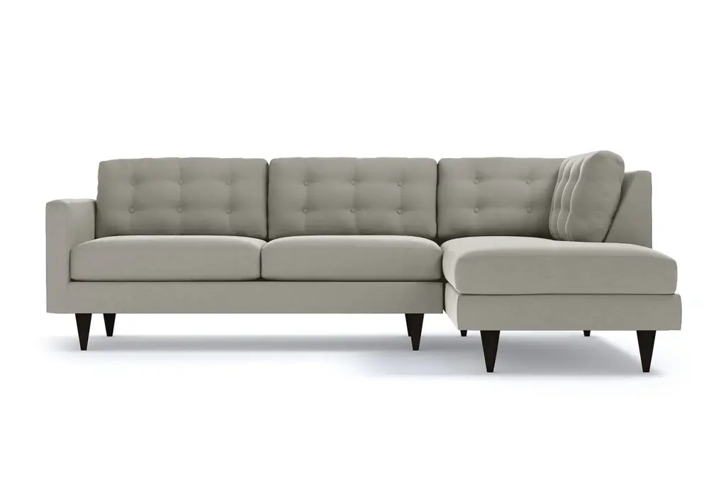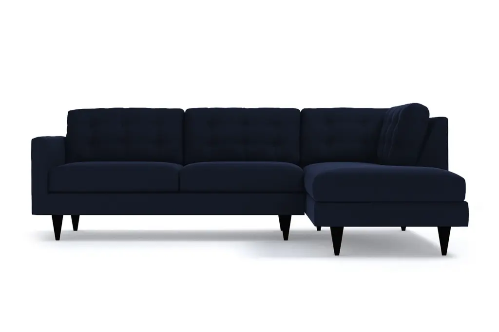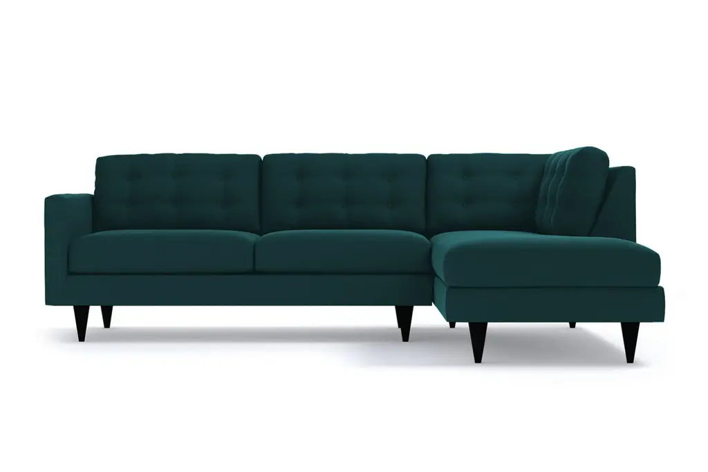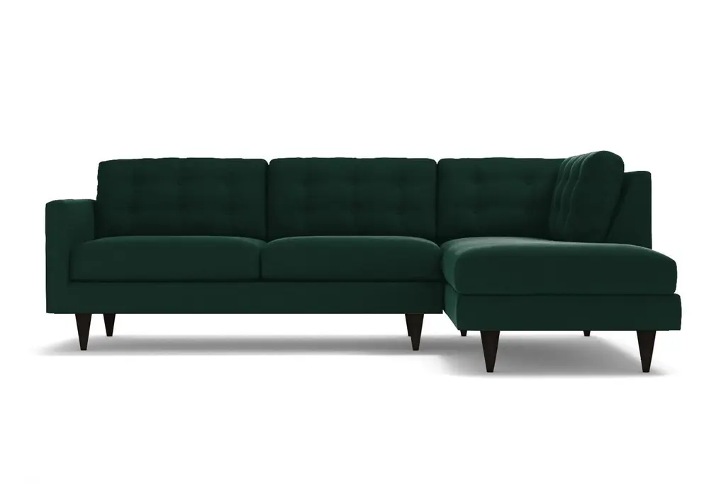 The Logan 2-Piece Plush Velvet Sectional from Apt2B boosts your midcentury modern style. Find all the classic details in this versatile piece from famed designer Kyle Schuneman, like button tufting, tapered wooden legs and sumptuous velvet upholstery. Customize this velvet sectional to complement your décor with your choice of leg finish and a right- or left-side chaise. Choose a hue from our durable Velvet Performance Fabrics for the zippered, removable seat cushion covers to make a bold statement or add depth to a neutral color palette. We’ll even send you free velvet fabric swatches so you can see what works in your space (and P.S., our velvets are kid- and pet-friendly!). Our Logan Velvet Sectional is custom made in our Los Angeles facility with a solid wood frame, eco-friendly construction and cozy yet supportive 2.0-density foam seat cushions. We ship free right to your door, offer no-hassle returns and cover the frame and workmanship of your plush velvet sectional with a limited lifetime warranty.