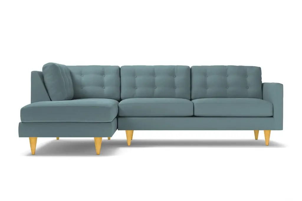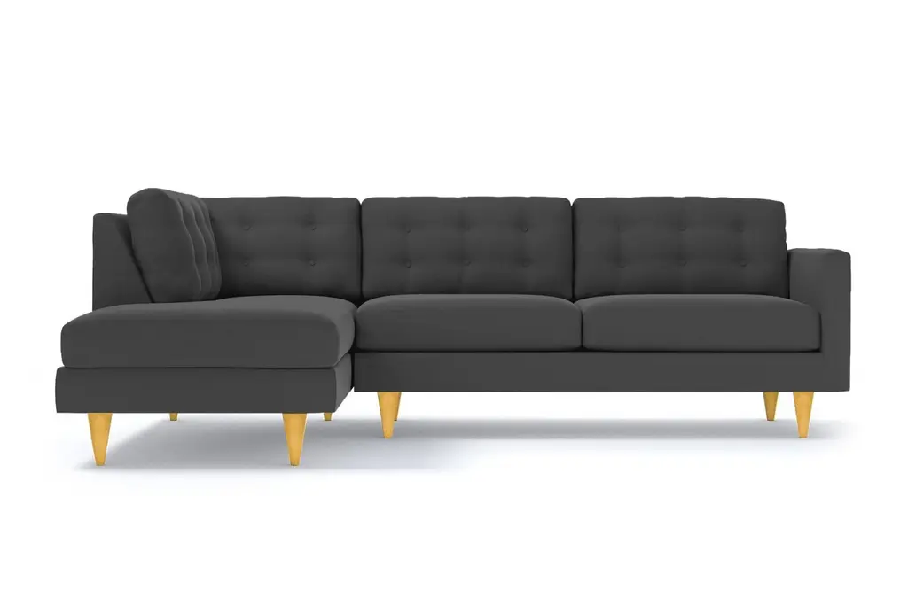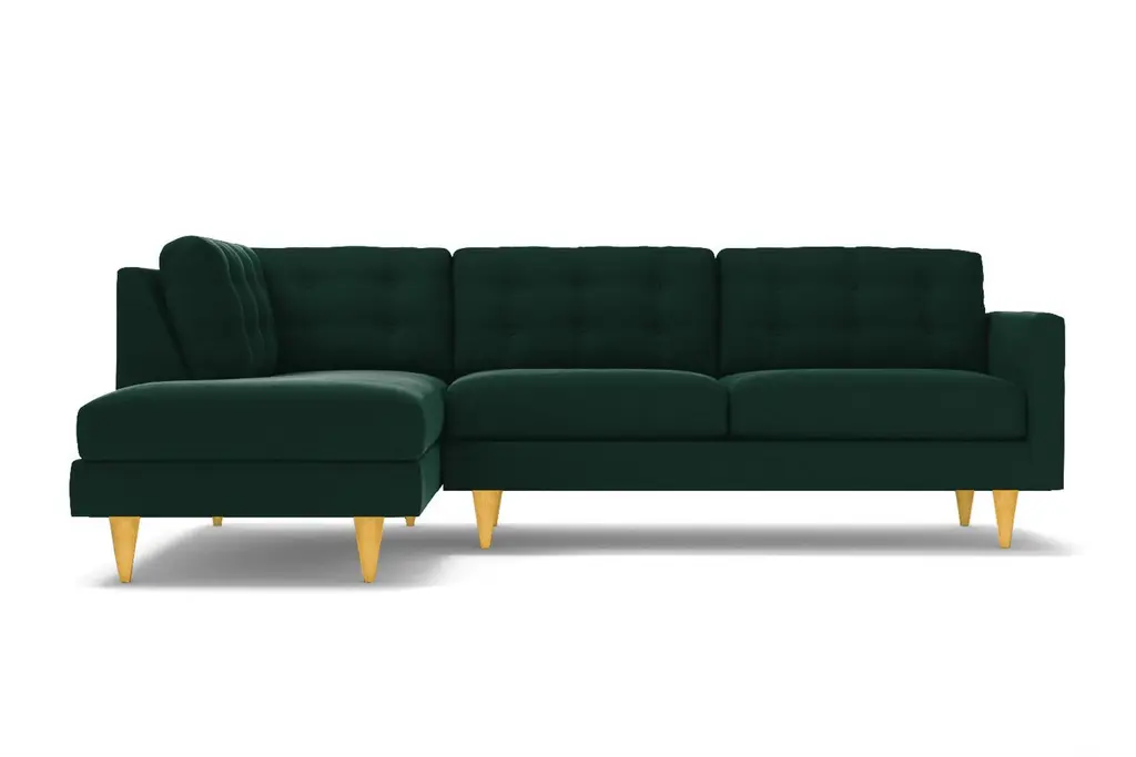 The Logan 2-Piece Plush Velvet Sectional from Apt2B boosts your midcentury modern style. Find all the classic details in this versatile piece from famed designer Kyle Schuneman, like button tufting, tapered wooden legs and sumptuous velvet upholstery. Customize this velvet sectional to complement your décor with your choice of leg finish and a right- or left-side chaise. Choose a hue from our durable Velvet Performance Fabrics for the zippered, removable seat cushion covers to make a bold statement or add depth to a neutral color palette. We’ll even send you free velvet fabric swatches so you can see what works in your space (and P.S., our velvets are kid- and pet-friendly!). Our Logan Velvet Sectional is custom made in our Los Angeles facility with a solid wood frame, eco-friendly construction and cozy yet supportive 2.0-density foam seat cushions. We ship free right to your door, offer no-hassle returns and cover the frame and workmanship of your plush velvet sectional with a limited lifetime warranty.