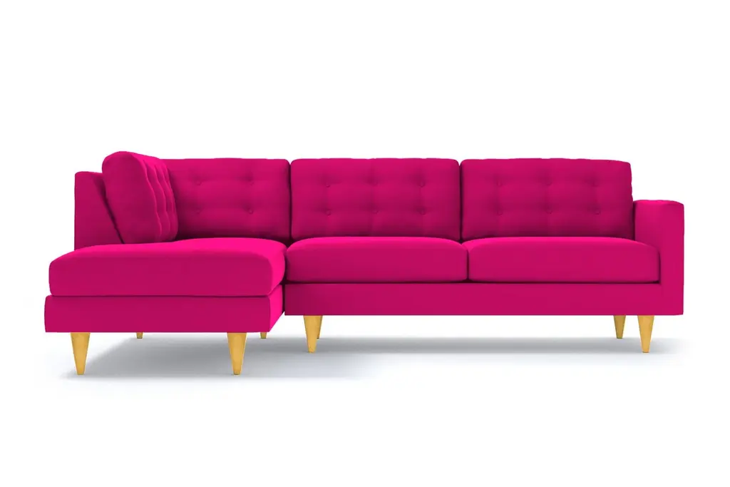 The Logan 2-Piece Plush Velvet Sectional from Apt2B boosts your midcentury modern style. Find all the classic details in this versatile piece from famed designer Kyle Schuneman, like button tufting, tapered wooden legs and sumptuous velvet upholstery. Customize this velvet sectional to complement your décor with your choice of leg finish and a right- or left-side chaise. Choose a hue from our durable Velvet Performance Fabrics for the zippered, removable seat cushion covers to make a bold statement or add depth to a neutral color palette. We’ll even send you free velvet fabric swatches so you can see what works in your space (and P.S., our velvets are kid- and pet-friendly!). Our Logan Velvet Sectional is custom made in our Los Angeles facility with a solid wood frame, eco-friendly construction and cozy yet supportive 2.0-density foam seat cushions. We ship free right to your door, offer no-hassle returns and cover the frame and workmanship of your plush velvet sectional with a limited lifetime warranty.