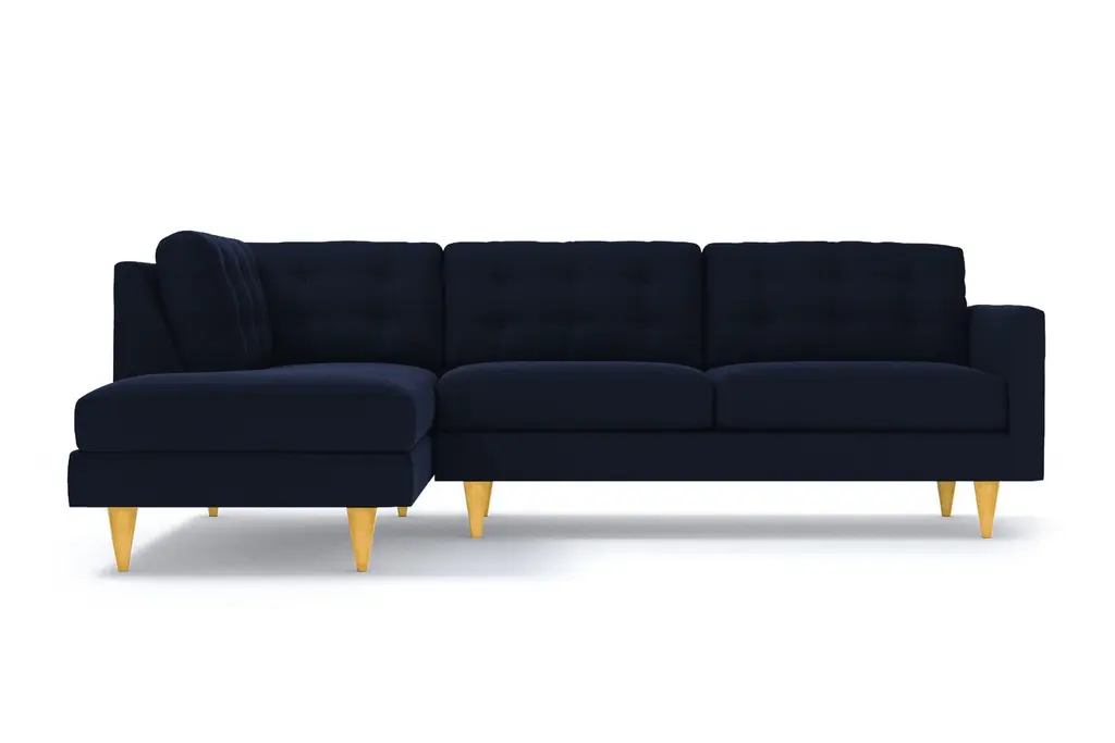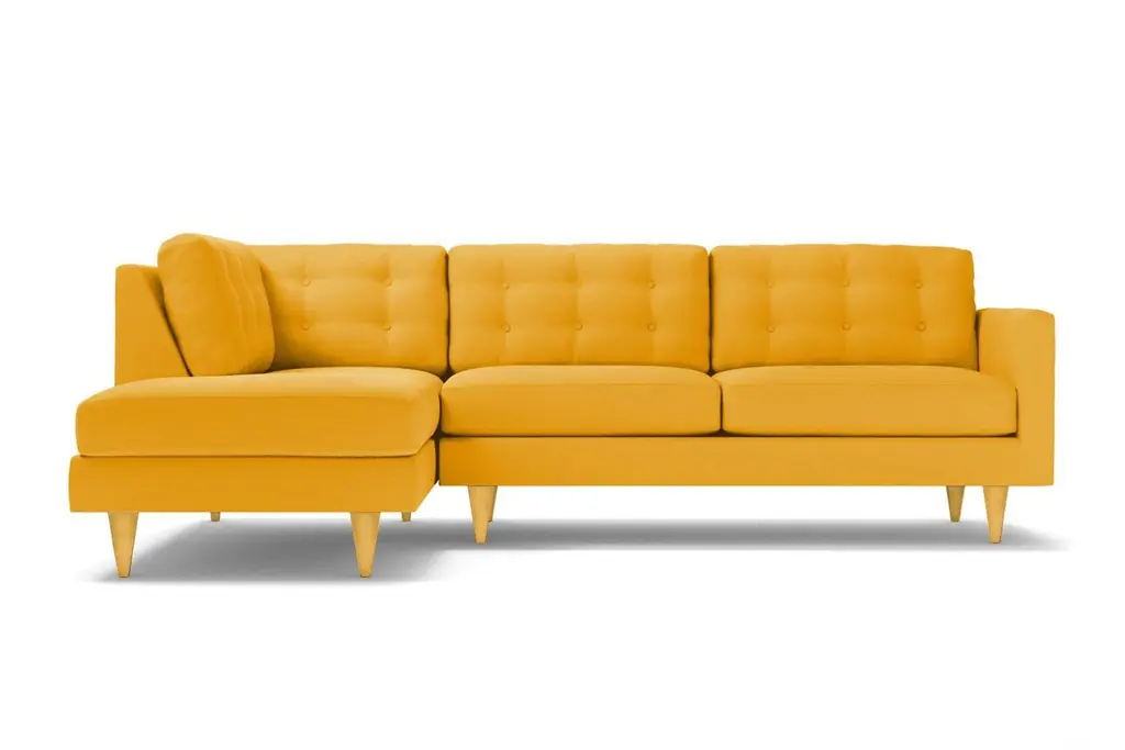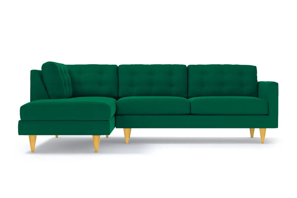 The Logan 2-Piece Plush Velvet Sectional from Apt2B boosts your midcentury modern style. Find all the classic details in this versatile piece from famed designer Kyle Schuneman, like button tufting, tapered wooden legs and sumptuous velvet upholstery. Customize this velvet sectional to complement your décor with your choice of leg finish and a right- or left-side chaise. Choose a hue from our durable Velvet Performance Fabrics for the zippered, removable seat cushion covers to make a bold statement or add depth to a neutral color palette. We’ll even send you free velvet fabric swatches so you can see what works in your space (and P.S., our velvets are kid- and pet-friendly!). Our Logan Velvet Sectional is custom made in our Los Angeles facility with a solid wood frame, eco-friendly construction and cozy yet supportive 2.0-density foam seat cushions. We ship free right to your door, offer no-hassle returns and cover the frame and workmanship of your plush velvet sectional with a limited lifetime warranty.