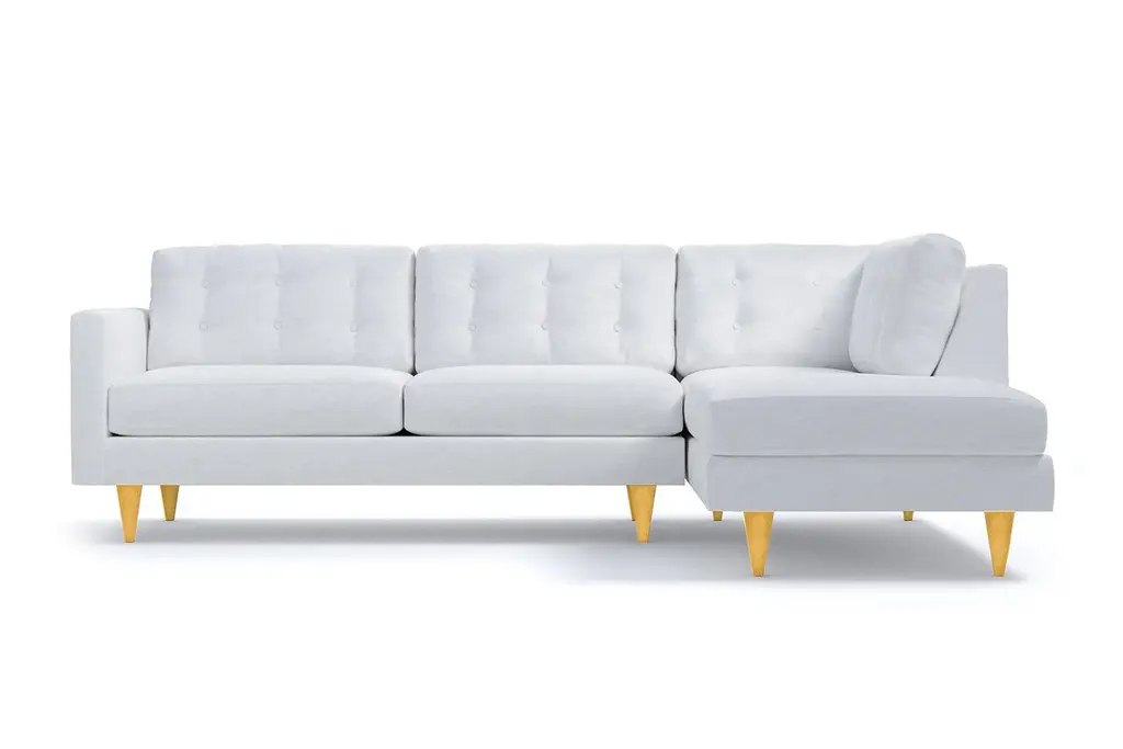 The Logan 2-Piece Plush Velvet Sectional from Apt2B boosts your midcentury modern style. Find all the classic details in this versatile piece from famed designer Kyle Schuneman, like button tufting, tapered wooden legs and sumptuous velvet upholstery. Customize this velvet sectional to complement your décor with your choice of leg finish and a right- or left-side chaise. Choose a hue from our durable Velvet Performance Fabrics for the zippered, removable seat cushion covers to make a bold statement or add depth to a neutral color palette. We’ll even send you free velvet fabric swatches so you can see what works in your space (and P.S., our velvets are kid- and pet-friendly!). Our Logan Velvet Sectional is custom made in our Los Angeles facility with a solid wood frame, eco-friendly construction and cozy yet supportive 2.0-density foam seat cushions. We ship free right to your door, offer no-hassle returns and cover the frame and workmanship of your plush velvet sectional with a limited lifetime warranty.