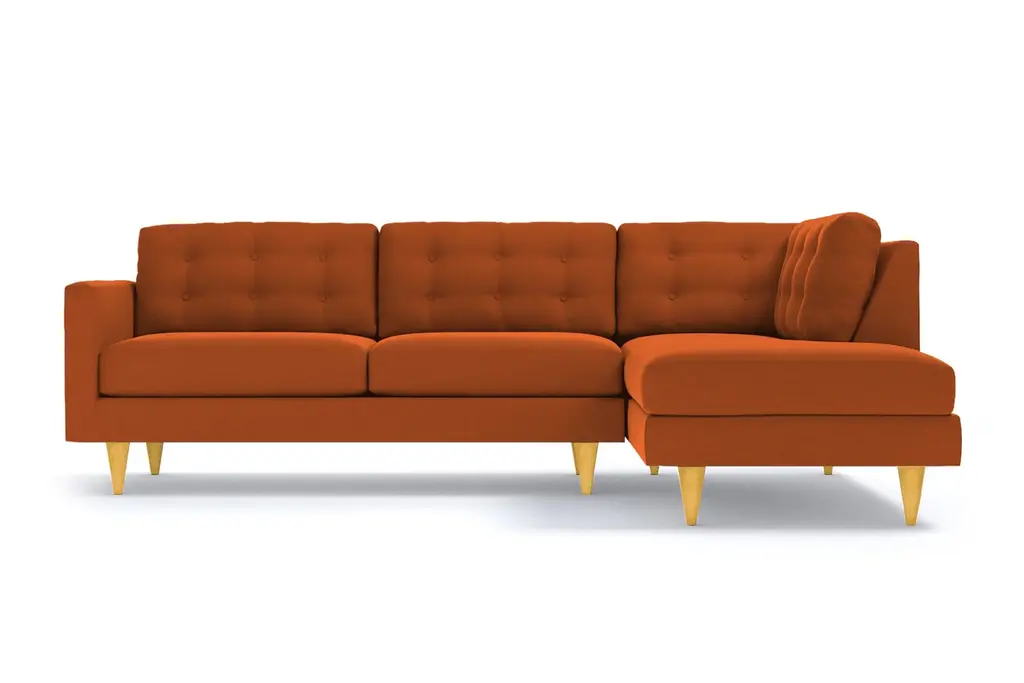 The Logan 2-Piece Plush Velvet Sectional from Apt2B boosts your midcentury modern style. Find all the classic details in this versatile piece from famed designer Kyle Schuneman, like button tufting, tapered wooden legs and sumptuous velvet upholstery. Customize this velvet sectional to complement your décor with your choice of leg finish and a right- or left-side chaise. Choose a hue from our durable Velvet Performance Fabrics for the zippered, removable seat cushion covers to make a bold statement or add depth to a neutral color palette. We’ll even send you free velvet fabric swatches so you can see what works in your space (and P.S., our velvets are kid- and pet-friendly!). Our Logan Velvet Sectional is custom made in our Los Angeles facility with a solid wood frame, eco-friendly construction and cozy yet supportive 2.0-density foam seat cushions. We ship free right to your door, offer no-hassle returns and cover the frame and workmanship of your plush velvet sectional with a limited lifetime warranty.
