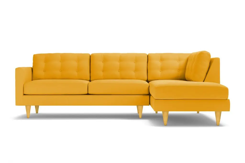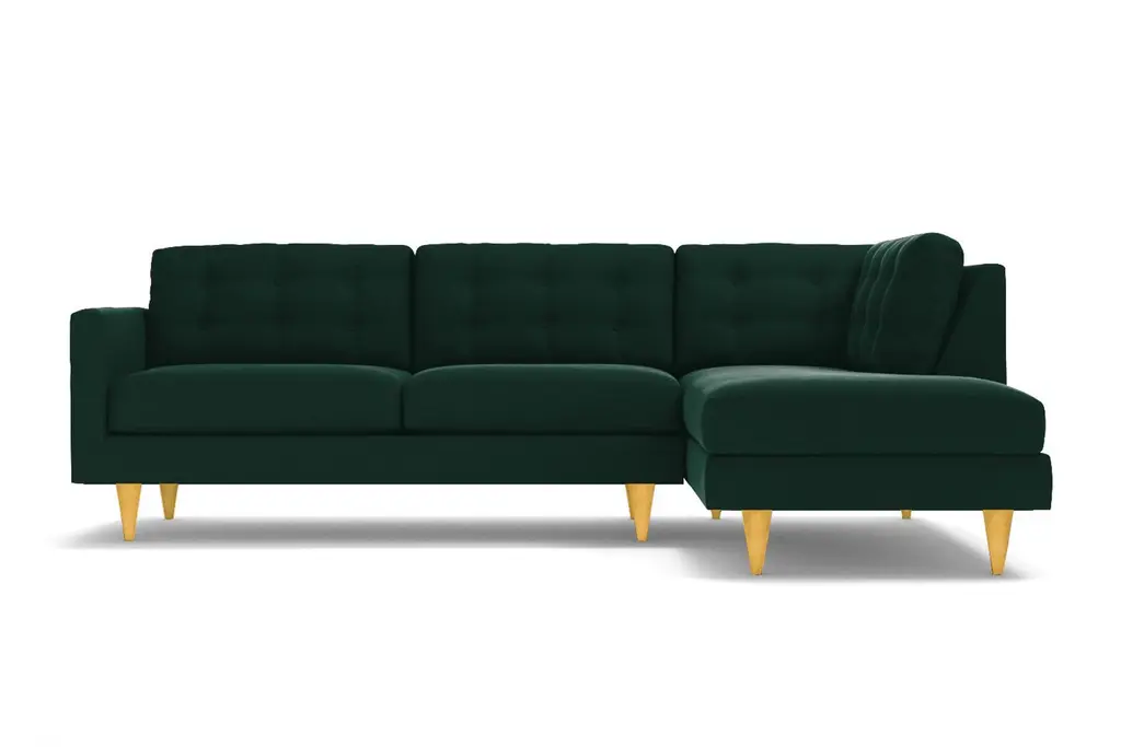 The Logan 2-Piece Plush Velvet Sectional from Apt2B boosts your midcentury modern style. Find all the classic details in this versatile piece from famed designer Kyle Schuneman, like button tufting, tapered wooden legs and sumptuous velvet upholstery. Customize this velvet sectional to complement your décor with your choice of leg finish and a right- or left-side chaise. Choose a hue from our durable Velvet Performance Fabrics for the zippered, removable seat cushion covers to make a bold statement or add depth to a neutral color palette. We’ll even send you free velvet fabric swatches so you can see what works in your space (and P.S., our velvets are kid- and pet-friendly!). Our Logan Velvet Sectional is custom made in our Los Angeles facility with a solid wood frame, eco-friendly construction and cozy yet supportive 2.0-density foam seat cushions. We ship free right to your door, offer no-hassle returns and cover the frame and workmanship of your plush velvet sectional with a limited lifetime warranty.