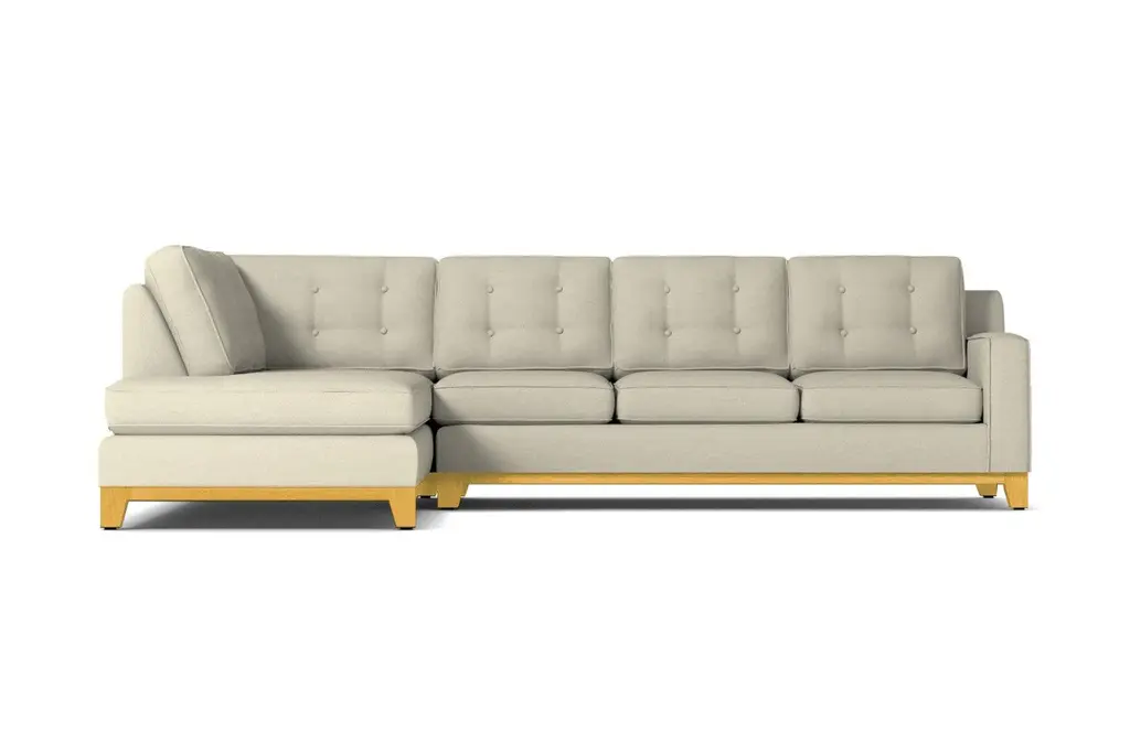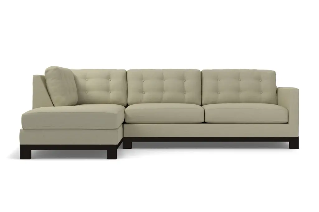 How hot is this sectional? Seriously, it looks like it just walked off the set of "Mad Men." It features button-tufted back cushions and clean lines for a sophisticated feel. The solid wood base accentuates its modern style, which will look just stunning in your living room. We'll customize the Logan Drive in your choice of dozens of colors - from cream and cobalt to green apple and amethyst, you'll find the perfect shade for your home. Our upholstery is hypo-allergenic and breathable, so it's ideal for those who suffer from allergies. Pets and kids are no match for the Logan Drive since it's stain resistant and easy to clean. This sofa is made in the USA and backed by a limited lifetime warranty. Add a bit of vintage glamour to your space with the Logan Drive. A solid wood base and button tufted back cushions take this modern shape to an elevated level. The ultimate show piece for your stylish room.