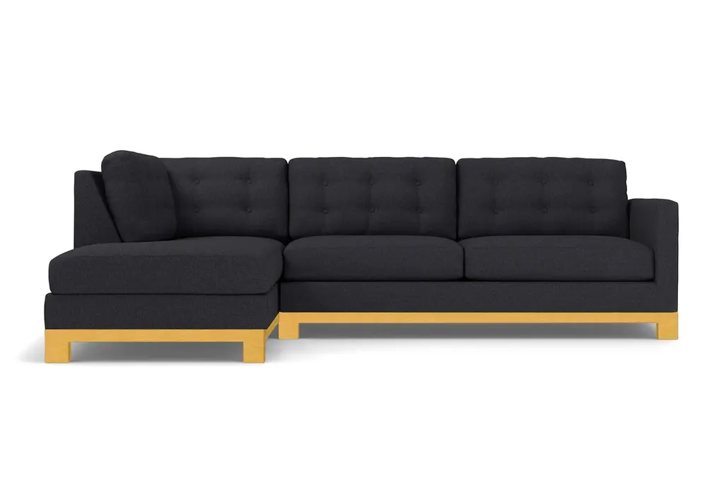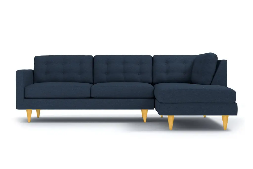 How hot is this sectional? Seriously, it looks like it just walked off the set of "Mad Men." It features button-tufted back cushions and clean lines for a sophisticated feel. The solid wood base accentuates its modern style, which will look just stunning in your living room. We'll customize the Logan Drive in your choice of dozens of colors - from cream and cobalt to green apple and amethyst, you'll find the perfect shade for your home. Our upholstery is hypo-allergenic and breathable, so it's ideal for those who suffer from allergies. Pets and kids are no match for the Logan Drive since it's stain resistant and easy to clean. This sofa is made in the USA and backed by a limited lifetime warranty. Add a bit of vintage glamour to your space with the Logan Drive. A solid wood base and button tufted back cushions take this modern shape to an elevated level. The ultimate show piece for your stylish room.