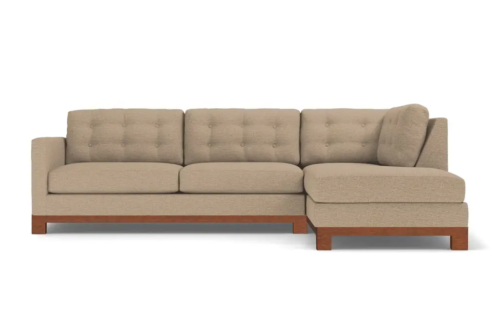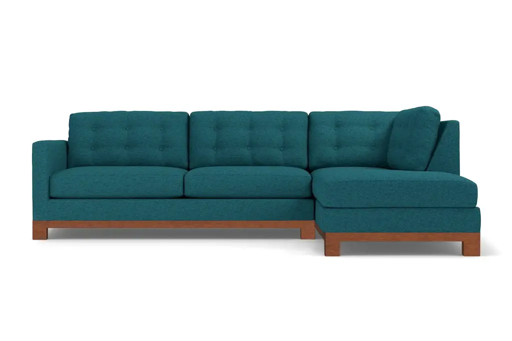 How hot is this sectional? Seriously, it looks like it just walked off the set of "Mad Men." It features button-tufted back cushions and clean lines for a sophisticated feel. The solid wood base accentuates its modern style, which will look just stunning in your living room. We'll customize the Logan Drive in your choice of dozens of colors - from cream and cobalt to green apple and amethyst, you'll find the perfect shade for your home. Our upholstery is hypo-allergenic and breathable, so it's ideal for those who suffer from allergies. Pets and kids are no match for the Logan Drive since it's stain resistant and easy to clean. This sofa is made in the USA and backed by a limited lifetime warranty. Add a bit of vintage glamour to your space with the Logan Drive. A solid wood base and button tufted back cushions take this modern shape to an elevated level. The ultimate show piece for your stylish room.
