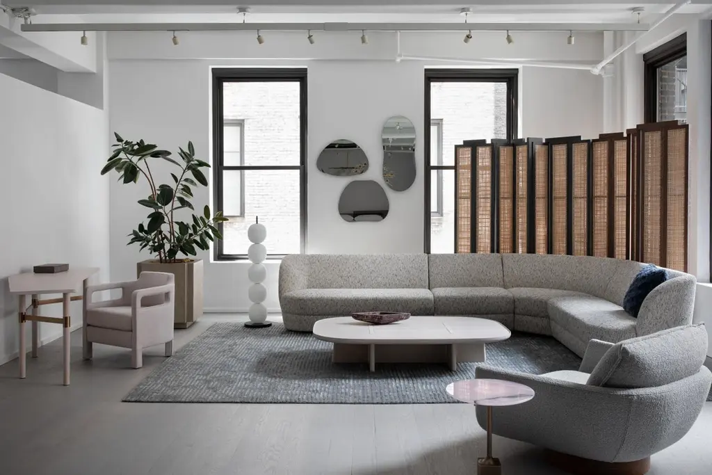 This Lombard Street sectional by Yabu Pushelberg is composed of five modules in a U shape and is upholstered in Bagdat Caddesi, silky, soft pile mohair. Bagdat Caddesi comes in 7 colorways from Italy with a composition of 100% mohair, a weight of 680g/m and a Martindale of 35,000 rubs.The Lombard Street sectional sofa by Yabu Pushelberg creates a tailored profile and elegant sit, unusual for normally relaxed sectionals. Built by Austrian craftsmen with a solid wood frame and sprung seat the sofa creates comfort and durability designed to last for generations. A set of seven different modules allow the sofa to tackle any angle in style with options from small curved loveseats, to straight sofas to expansive sweeping configurations for an elegant lobby. George Yabu and Glenn Pushelberg lead one of the world’s most admired design practices with offices in New York and Toronto. Award winning designs for restaurateur Daniel Boulud, hotelier Ian Schrager and fashion house Louis Vuitton are in their portfolio among many private residences across the globe.