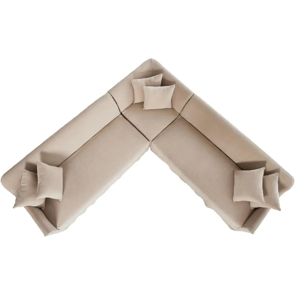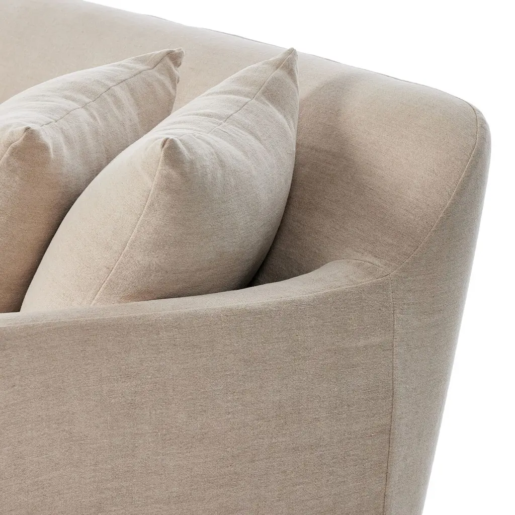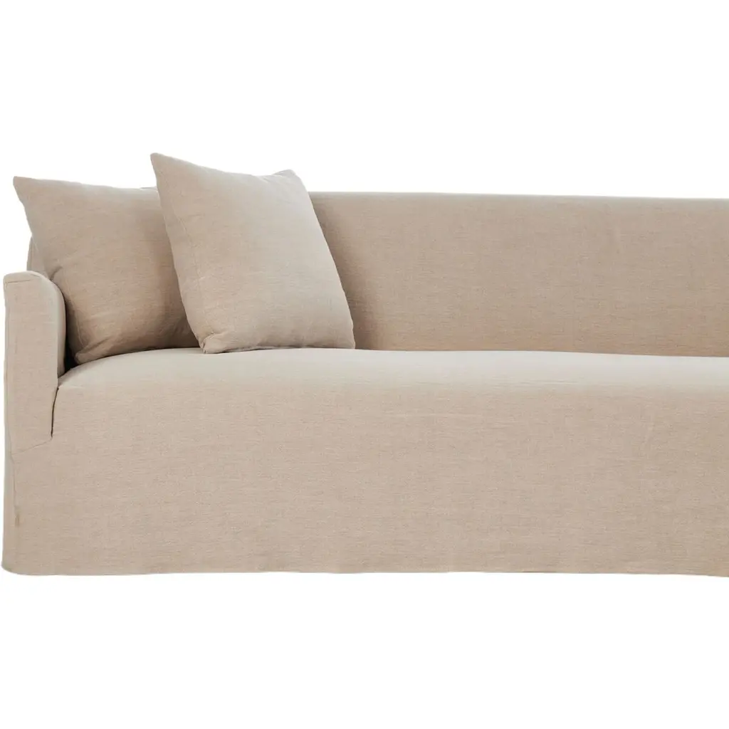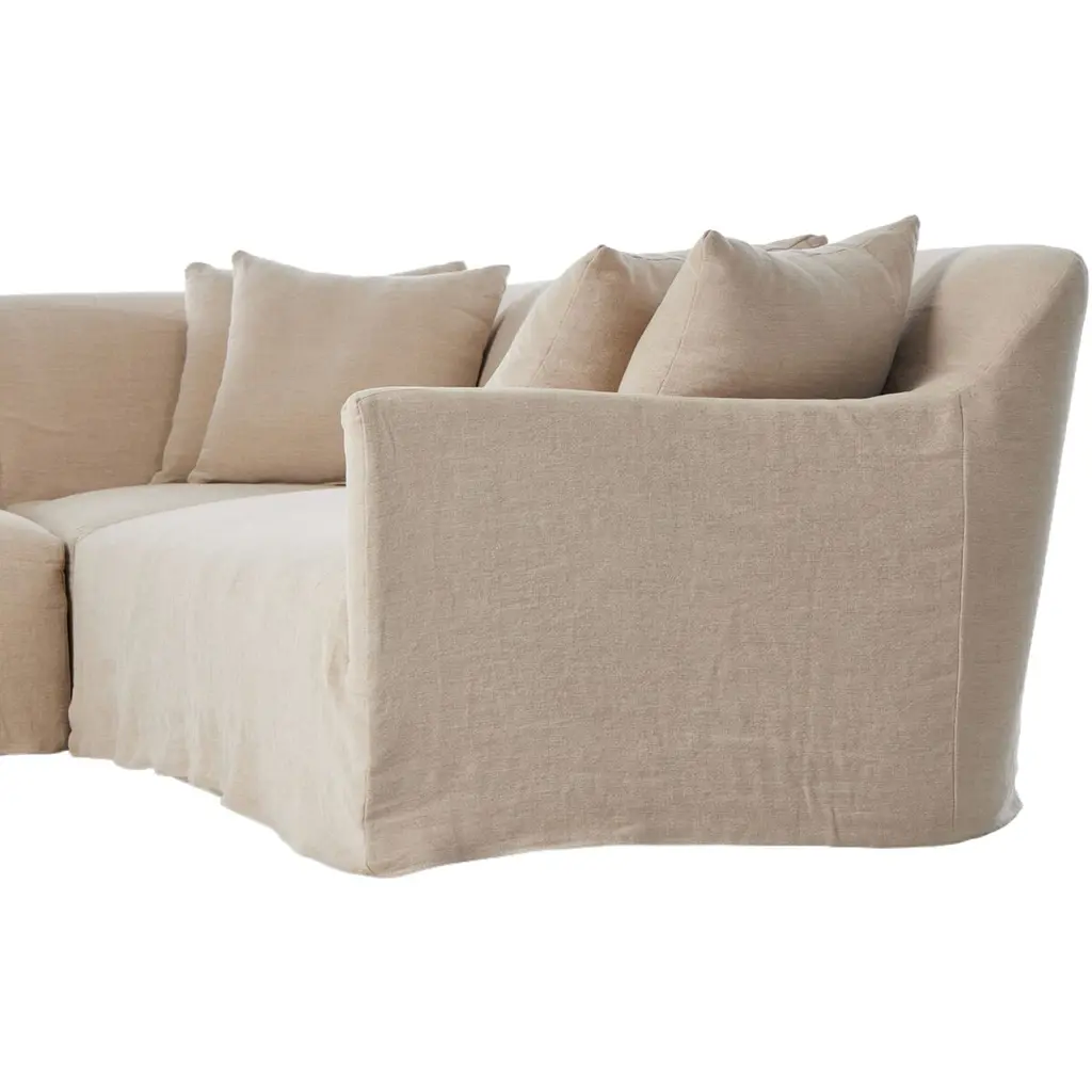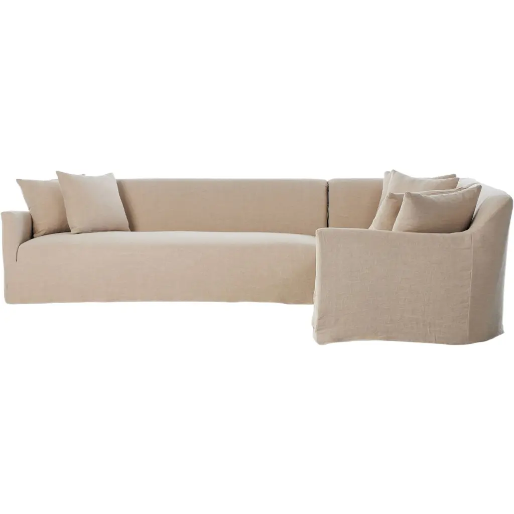 A simple modern design covered in a removable 100% linen slipcover with a tightly tailored look. The sectional is designed with subtle slopes all around and fixed seating with S-spring construction. A design collaboration by Amber Lewis and Four Hands.
