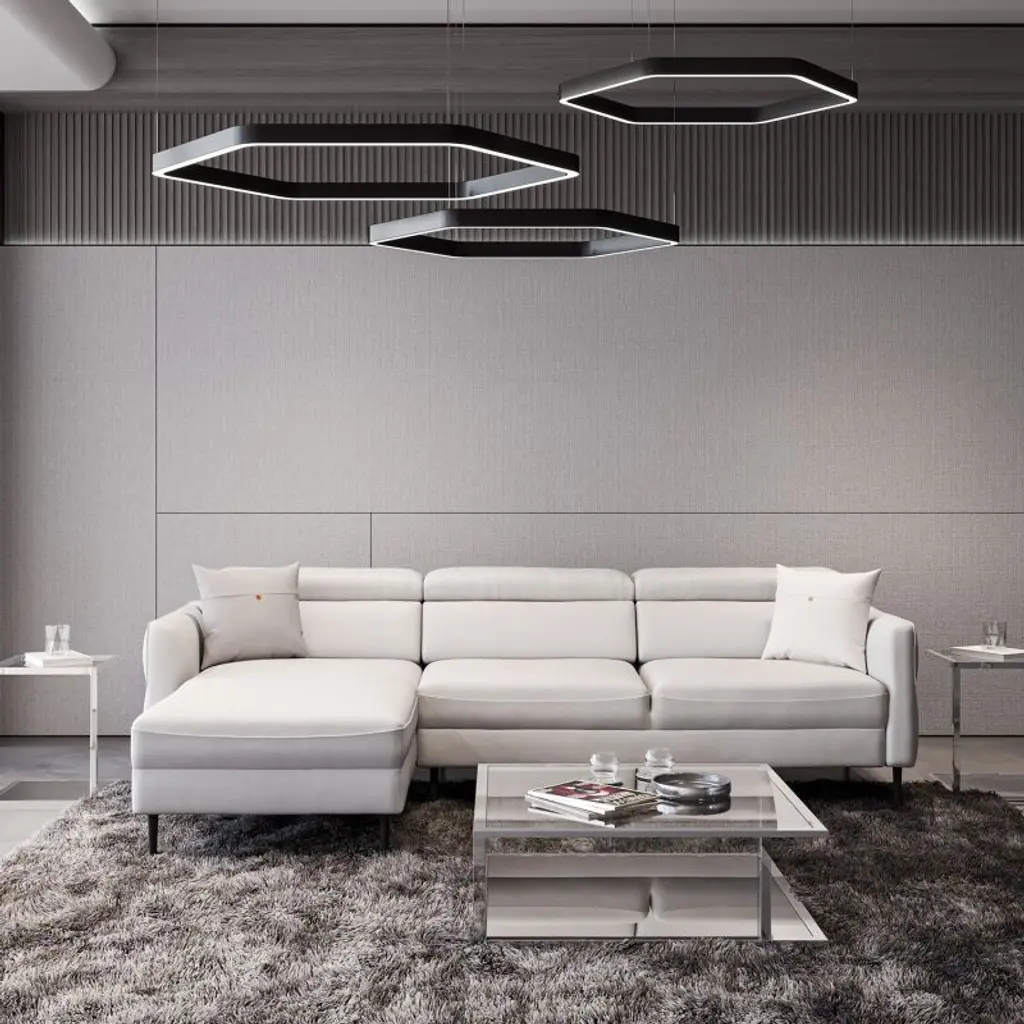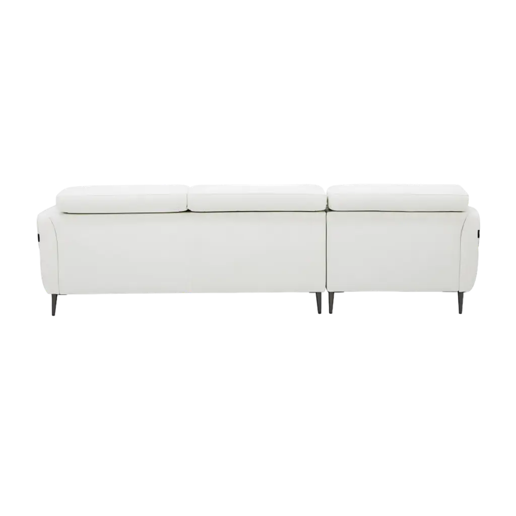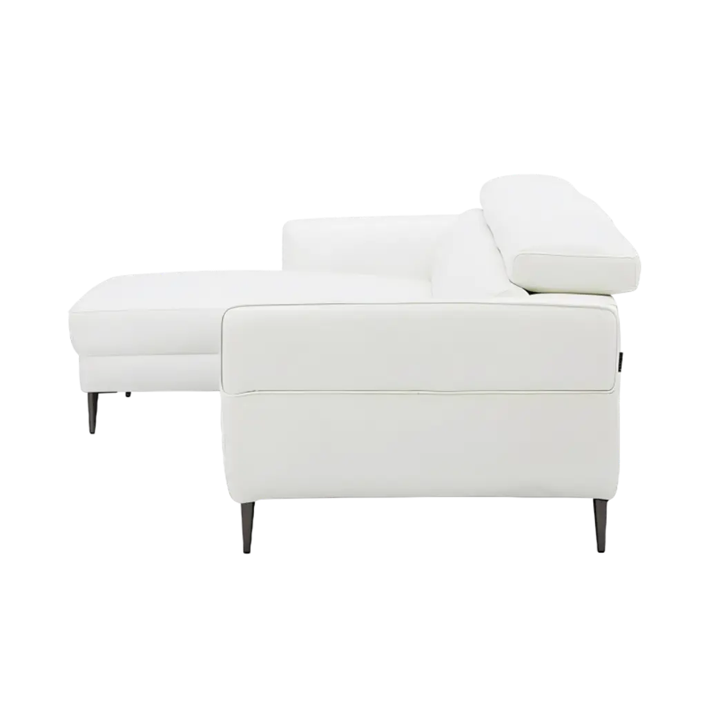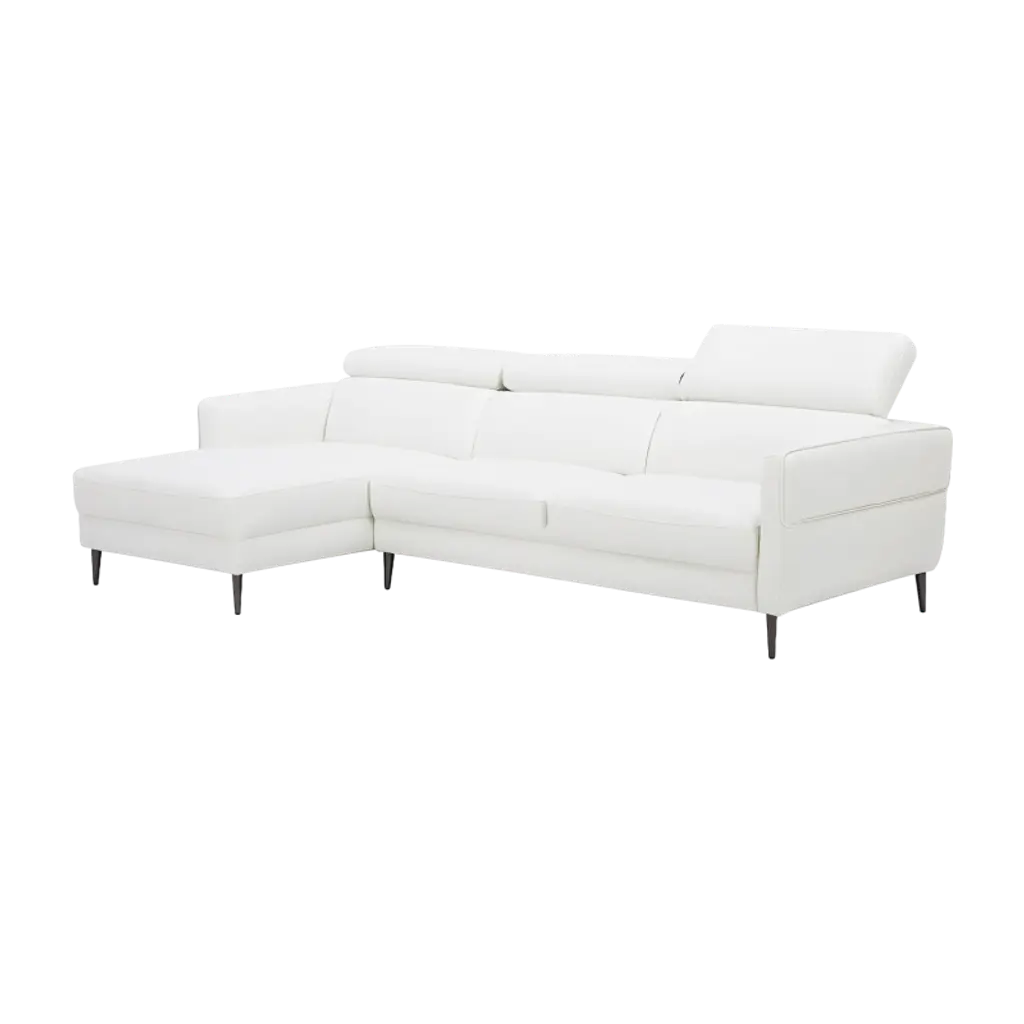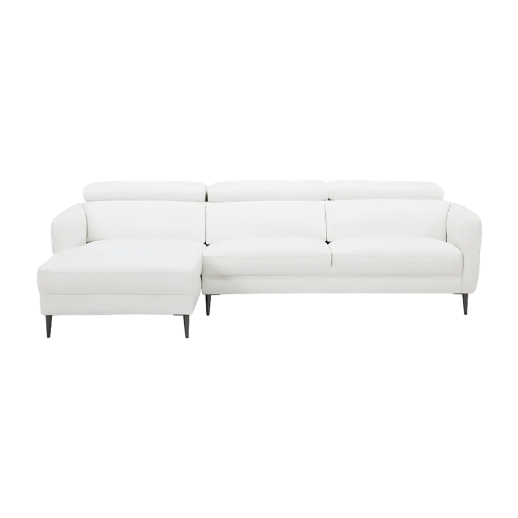 With its clean lines and adjustable headrests, the Luca Sectional Sofa in White combines chic, sophisticated style with versatility. It features sturdy iron legs and plush foam padding to maximize comfort, and is upholstered in snowy white eco-leather. Choose from left-facing and right-facing chaise options to suit your space.