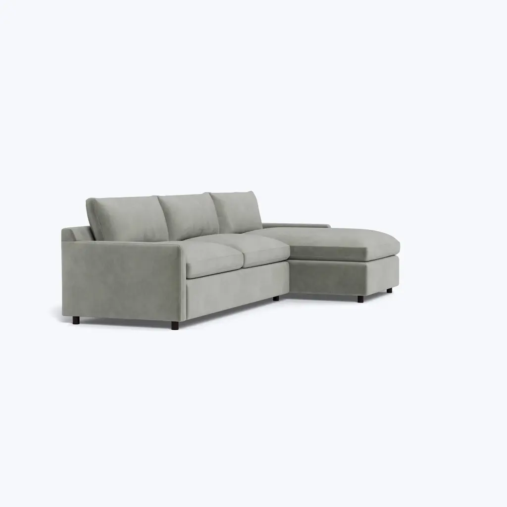 Inspired by the relaxed charm of Brooklyn’s Cobble Hill neighborhood, the Lucali Sectional is perfect for those cozy nights in—whether you're sharing pizza with friends or settling in for a movie marathon. Measuring 121 inches, this two-piece sectional offers generous seating for family rooms, casual living spaces, or dens, making it the ideal choice for those who love to lounge in style. With sleek track arms and a modern floating base, the Lucali Sectional adds a contemporary edge to any room, while its plush blend-down cushions provide the comfort you crave. The Lucali Sectional is crafted for ultimate relaxation and versatility. Its spacious seating is perfect for stretching out on your own or hosting family and friends for casual get-togethers. Whether it's a quiet evening or a lively gathering, the Lucali Sectional offers a cozy and stylish centerpiece for any occasion. Built with a sustainably sourced Goodwood frame, the Lucali Sectional marries eco-conscious materials with high-quality craftsmanship. The blend-down cushions, made from a luxurious mix of feather and down, are carefully washed to meet hypoallergenic standards, ensuring a soft yet supportive seating experience that makes every moment feel like a retreat. Handcrafted in the USA, the Lucali Sectional can be customized to suit your style and space. Choose from over 80 fabric options, including sumptuous velvets, soft linens, and durable performance textiles, to create a sectional that perfectly reflects your personal aesthetic. With so many options available, it’s easy to make the Lucali Sectional your own, adding both style and comfort to your home. Whether you place it in a family room for everyday lounging or in a living room as the focal point for entertaining, the Lucali Sectional balances style, comfort, and practicality. Its modern design, eco-conscious construction, and customizable options make it an essential piece for creating a cozy yet stylish atmosphere, perfect for making lasting memories with loved ones.