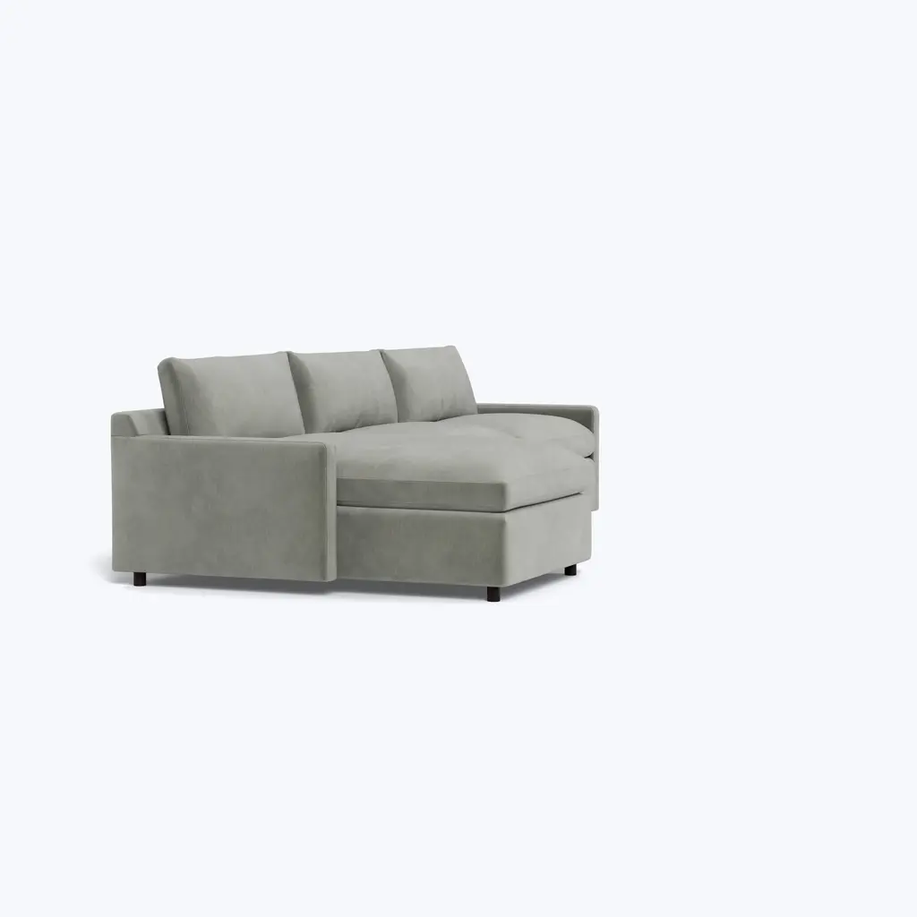 Inspired by the relaxed charm of Brooklyn’s Cobble Hill neighborhood, the Lucali Sectional is perfect for those cozy nights in—whether you're sharing pizza with friends or settling in for a movie marathon. Measuring 121 inches, this two-piece sectional offers generous seating for family rooms, casual living spaces, or dens, making it the ideal choice for those who love to lounge in style. With sleek track arms and a modern floating base, the Lucali Sectional adds a contemporary edge to any room, while its plush blend-down cushions provide the comfort you crave. The Lucali Sectional is crafted for ultimate relaxation and versatility. Its spacious seating is perfect for stretching out on your own or hosting family and friends for casual get-togethers. Whether it's a quiet evening or a lively gathering, the Lucali Sectional offers a cozy and stylish centerpiece for any occasion. Built with a sustainably sourced Goodwood frame, the Lucali Sectional marries eco-conscious materials with high-quality craftsmanship. The blend-down cushions, made from a luxurious mix of feather and down, are carefully washed to meet hypoallergenic standards, ensuring a soft yet supportive seating experience that makes every moment feel like a retreat. Handcrafted in the USA, the Lucali Sectional can be customized to suit your style and space. Choose from over 80 fabric options, including sumptuous velvets, soft linens, and durable performance textiles, to create a sectional that perfectly reflects your personal aesthetic. With so many options available, it’s easy to make the Lucali Sectional your own, adding both style and comfort to your home. Whether you place it in a family room for everyday lounging or in a living room as the focal point for entertaining, the Lucali Sectional balances style, comfort, and practicality. Its modern design, eco-conscious construction, and customizable options make it an essential piece for creating a cozy yet stylish atmosphere, perfect for making lasting memories with loved ones.