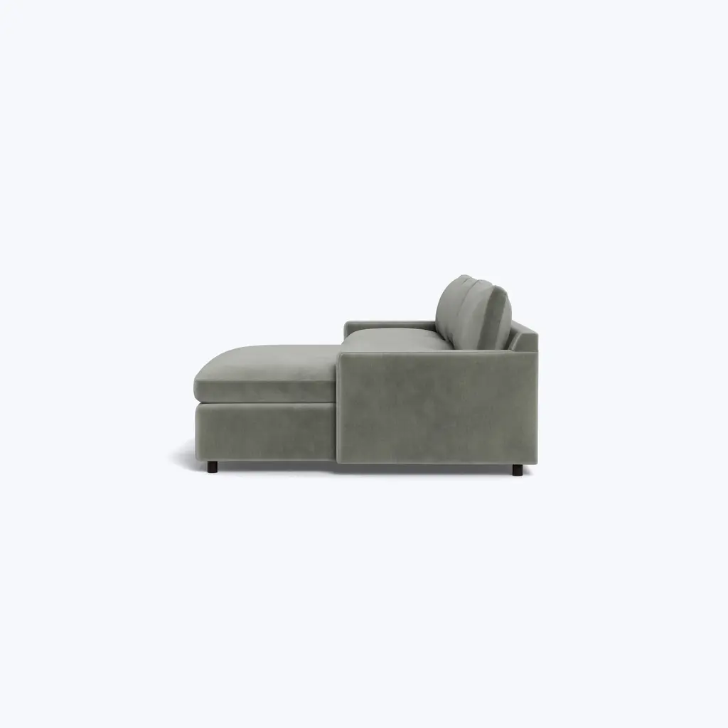 Inspired by the relaxed charm of Brooklyn’s Cobble Hill neighborhood, the Lucali Sectional is perfect for those cozy nights in—whether you're sharing pizza with friends or settling in for a movie marathon. Measuring 121 inches, this two-piece sectional offers generous seating for family rooms, casual living spaces, or dens, making it the ideal choice for those who love to lounge in style. With sleek track arms and a modern floating base, the Lucali Sectional adds a contemporary edge to any room, while its plush blend-down cushions provide the comfort you crave. The Lucali Sectional is crafted for ultimate relaxation and versatility. Its spacious seating is perfect for stretching out on your own or hosting family and friends for casual get-togethers. Whether it's a quiet evening or a lively gathering, the Lucali Sectional offers a cozy and stylish centerpiece for any occasion. Built with a sustainably sourced Goodwood frame, the Lucali Sectional marries eco-conscious materials with high-quality craftsmanship. The blend-down cushions, made from a luxurious mix of feather and down, are carefully washed to meet hypoallergenic standards, ensuring a soft yet supportive seating experience that makes every moment feel like a retreat. Handcrafted in the USA, the Lucali Sectional can be customized to suit your style and space. Choose from over 80 fabric options, including sumptuous velvets, soft linens, and durable performance textiles, to create a sectional that perfectly reflects your personal aesthetic. With so many options available, it’s easy to make the Lucali Sectional your own, adding both style and comfort to your home. Whether you place it in a family room for everyday lounging or in a living room as the focal point for entertaining, the Lucali Sectional balances style, comfort, and practicality. Its modern design, eco-conscious construction, and customizable options make it an essential piece for creating a cozy yet stylish atmosphere, perfect for making lasting memories with loved ones.