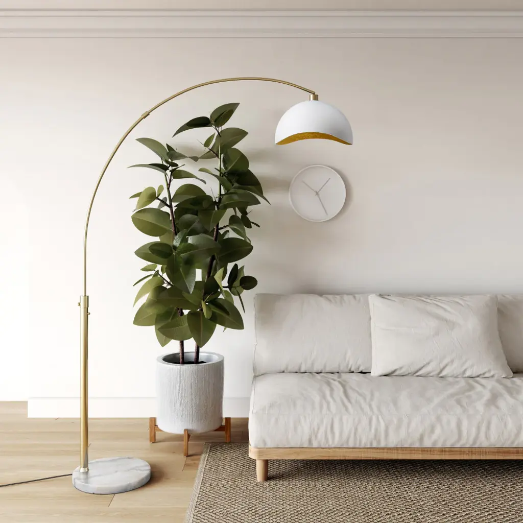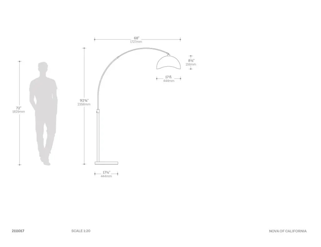 Inspired by the curve of the moon on a starlit evening, the NOVA in-house design team created one of our most adored designs, the Luna Bella Floor Lamp. Radiating feminine allure, this lamp boasts a gracefully arched silhouette that arcs overhead with elegance. Its round black marble base anchors a steel arc finished in weathered brass, extending gracefully to support a curved black shade with gold-leaf lining, casting warm and welcoming overhead lighting over any seating area. A versatile masterpiece, the Luna Bella Floor Lamp seamlessly harmonizes with various decor styles, from mid-century modern to contemporary to neoclassic. As the preeminent manufacturer of mid-century arc lamps, we take immense pride in crafting the world''s most exquisite, unique, and functional arcs designed to endure.• Round black marble base for stability and a touch of sophistication• Weathered brass steel arc extends gracefully over sectionals and sofas• Captivating black sculptural shade with a hand-applied gold-leaf lining• Provides functional and stylish overhead lighting with a touch of elegance • The Luna Bella collection is available in a variety of sizes & finish options.• Energy-efficient LED compatible.• Contract grade: high quality materials, quality workmanship, built to last a lifetime & designed in Venice Beach, California. • Smart switch compatible - effortlessly sync with Amazon Echo, Google Assistant, and Apple Home for easy & automated control.• NOVA of California is the oldest light company in North America and has been making original contemporary designs for 100 years. • Sustainability Statement: We are committed to minimizing the unwanted impact our business has on the environment. We care for our planet.