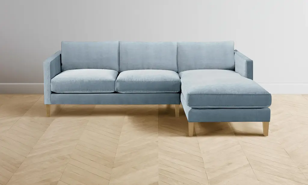 Madeline Eggshell Blue Performance Slipcovered Chaise Sectional - Left Chaise - 113"