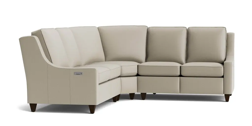 Say goodbye to ordinary recliners. This BenchMade Motion sectional is designed and engineered to be ingenious, but to look and feel like its stationary upholstery. With superior cushioning and coil springs seat support, you can relax and recline with a powered headrest. Buy now or customize it just the way youd like it with your choice of arms (sock, panel, flair, setback or slope), semi-attached cushion back (boxed edge, knife edge or bed pillow), removable legs (turned, tapered or metal), arm caps, seat cushion fill, nailhead trim - even Bluetooth is an option. Choose from over 40 leathers. Made in the USA.