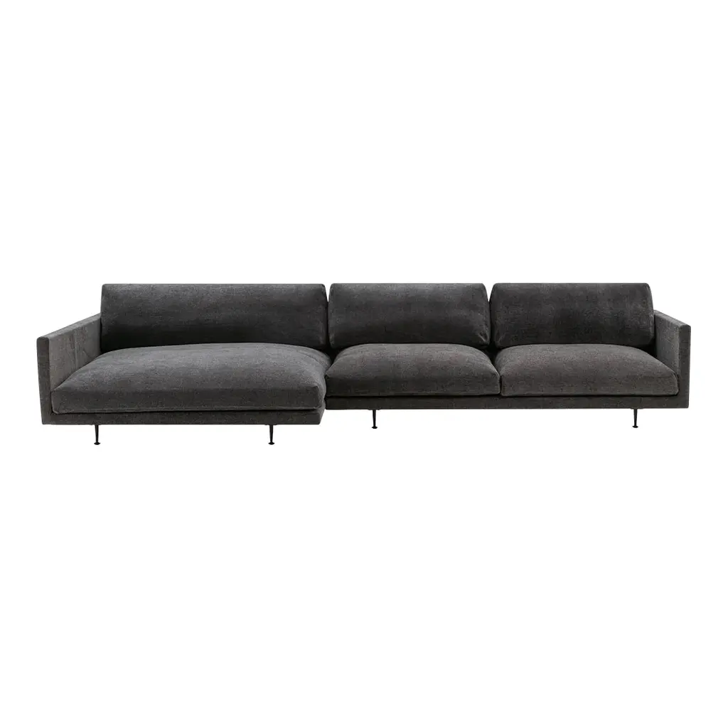 The Maho Pre-configured Sofa - Setup 2, a Henrik Pedersen design for Wendelbo, transforms the conventional sectional into a modern manifesto of relaxed sophistication. Available in both left and right-facing orientations, this versatile configuration pairs a sumptuous chaise lounge with a spacious two-seater to create the ultimate contemporary lounging landscape for discerning interiors. The genius of Setup 2 lies in its perfect proportional balancethe generous 1450mm depth chaise provides exceptional lounging comfort while the complementary two-seater module offers additional seating without overwhelming the space. The entire composition appears to float above its precisely engineered black powder-coated steel frame, creating a visual lightness that belies the sofa's substantial presence. What elevates the Maho beyond ordinary sectionals is its exceptional comfort engineering. The loose cushioning system features 100% down/feather back cushions that cradle the body in luxurious support, while the high-resilient foam seat cushions with down/feather wrap offer the perfect balance of structure and softness. This thoughtful construction creates a sofa that actually improves with use, as the premium materials conform to your preferred seating positions. The clean, architectural lines of the Maho showcase Wendelbo's three generations of upholstery expertise, with meticulous attention to every seam and proportion. Choose between the standard 410mm seat height for a more relaxed, contemporary posture or the optional 440mm height for easier ingress and egress. Available in hundreds of premium upholstery options from Wendelbo's curated textile and leather collection, and backed by a 5-year warranty, the Maho Modular Sofa Setup 2 represents an investment in everyday luxury that will remain as relevant and comfortable years from now as it is today. Left-Facing Setup 2 Includes: [1] Module 25 (Chaise Long, Left Arm) [1] Module 2 (2 Seater, Side, Right Arm) w/ Standard and Optional Seat Heights Right-Facing Setup 2 Includes: [1] Module 26 (Chaise Long, Right Arm) [1] Module 1 (2 Seater, Side, Left Arm) w/ Standard and Optional Seat Heights