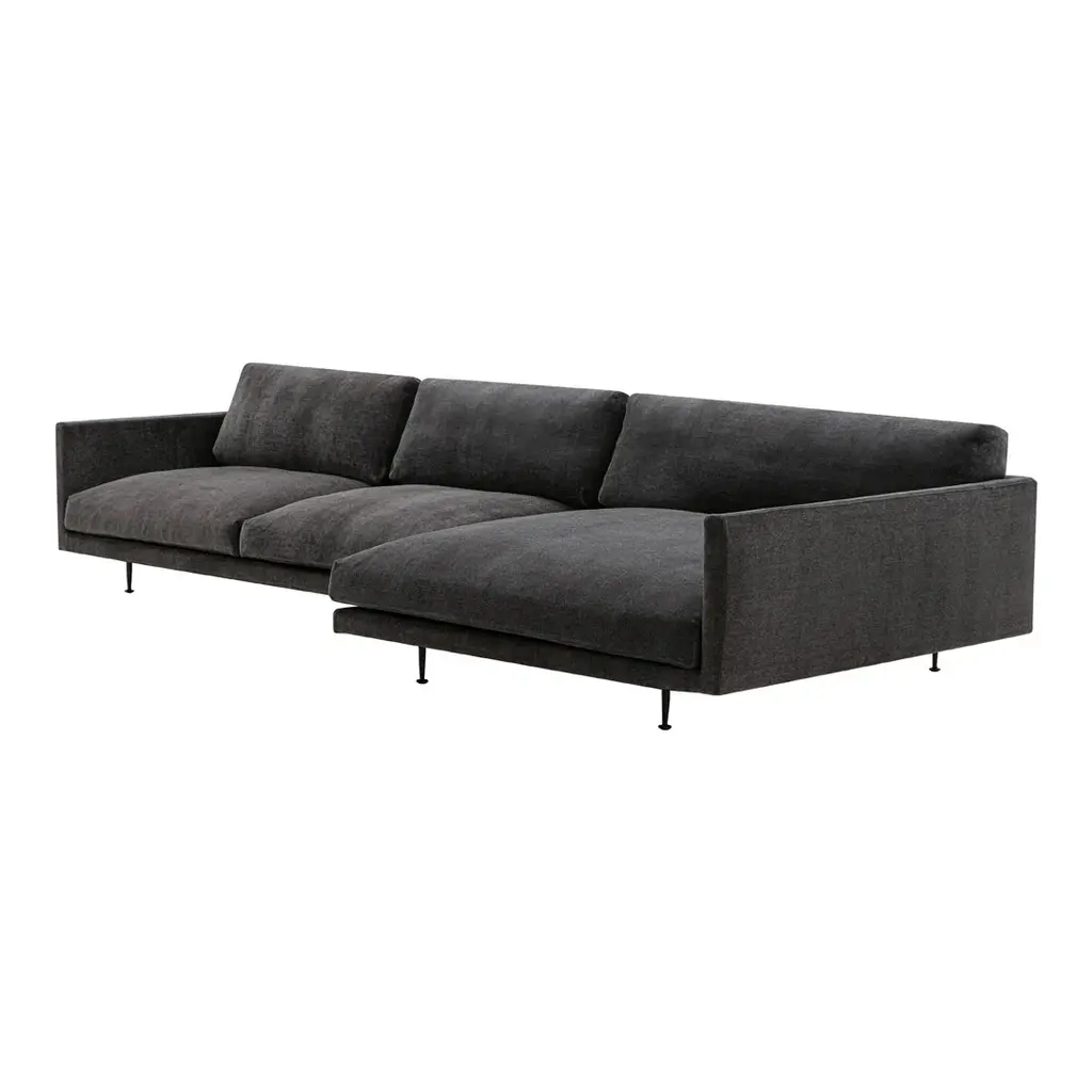 The Maho Pre-configured Sofa - Setup 2, a Henrik Pedersen design for Wendelbo, transforms the conventional sectional into a modern manifesto of relaxed sophistication. Available in both left and right-facing orientations, this versatile configuration pairs a sumptuous chaise lounge with a spacious two-seater to create the ultimate contemporary lounging landscape for discerning interiors. The genius of Setup 2 lies in its perfect proportional balancethe generous 1450mm depth chaise provides exceptional lounging comfort while the complementary two-seater module offers additional seating without overwhelming the space. The entire composition appears to float above its precisely engineered black powder-coated steel frame, creating a visual lightness that belies the sofa's substantial presence. What elevates the Maho beyond ordinary sectionals is its exceptional comfort engineering. The loose cushioning system features 100% down/feather back cushions that cradle the body in luxurious support, while the high-resilient foam seat cushions with down/feather wrap offer the perfect balance of structure and softness. This thoughtful construction creates a sofa that actually improves with use, as the premium materials conform to your preferred seating positions. The clean, architectural lines of the Maho showcase Wendelbo's three generations of upholstery expertise, with meticulous attention to every seam and proportion. Choose between the standard 410mm seat height for a more relaxed, contemporary posture or the optional 440mm height for easier ingress and egress. Available in hundreds of premium upholstery options from Wendelbo's curated textile and leather collection, and backed by a 5-year warranty, the Maho Modular Sofa Setup 2 represents an investment in everyday luxury that will remain as relevant and comfortable years from now as it is today. Left-Facing Setup 2 Includes: [1] Module 25 (Chaise Long, Left Arm) [1] Module 2 (2 Seater, Side, Right Arm) w/ Standard and Optional Seat Heights Right-Facing Setup 2 Includes: [1] Module 26 (Chaise Long, Right Arm) [1] Module 1 (2 Seater, Side, Left Arm) w/ Standard and Optional Seat Heights