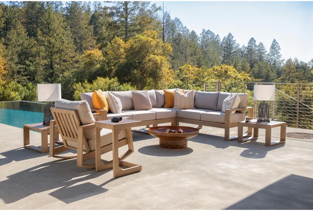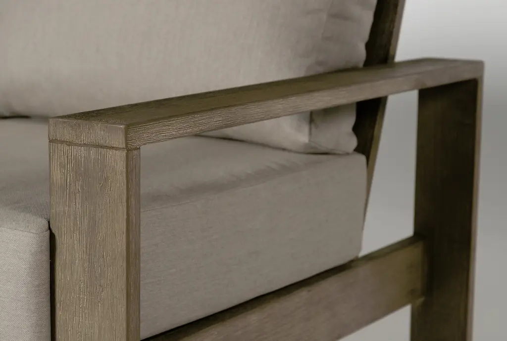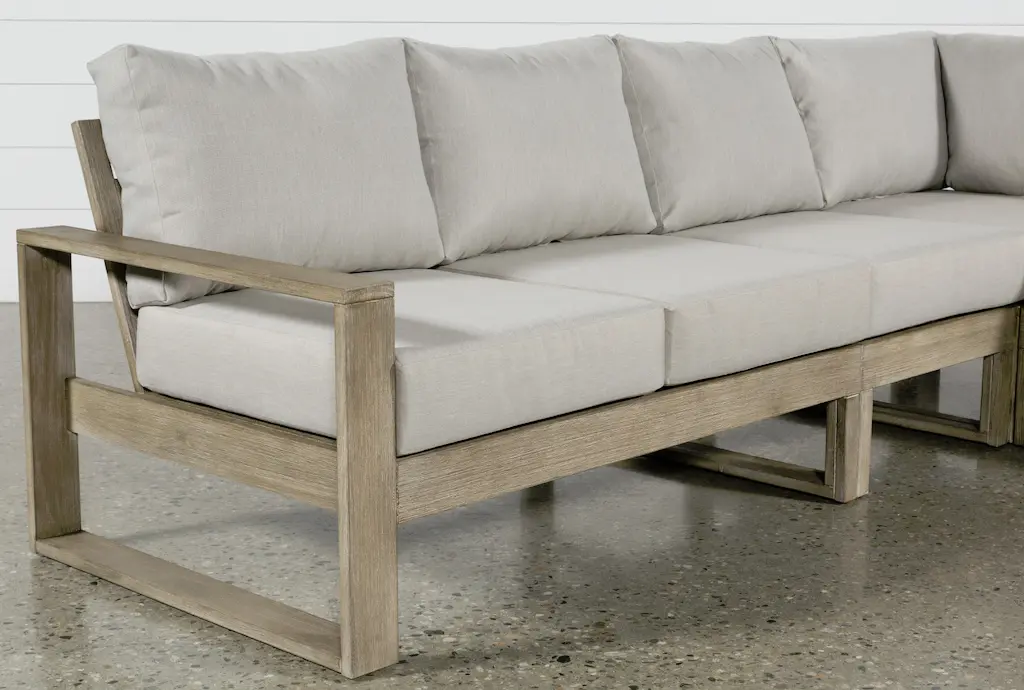 Bring tranquility, durability and quality to your backyard with our beautifully crafted Malaga 4-piece sectional. This inviting design features FSC-certified eucalyptus that’s wire brushed in a weathered grey finish. Not only does this tropical hardwood come from responsibly managed forests, it boasts natural oils that repel moisture, water and insects, and they help protect the wood from rot and decay. Eucalyptus also has a tight grain and silver patina that develops over time, which adds to its appeal. The cushions are upholstered in double-stitched solution-dyed polyester fabric and contain foam that’s water, mold and mildew-resistant. This patio piece will elevate your outdoor space.
