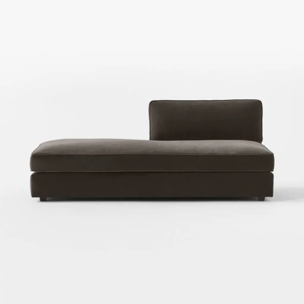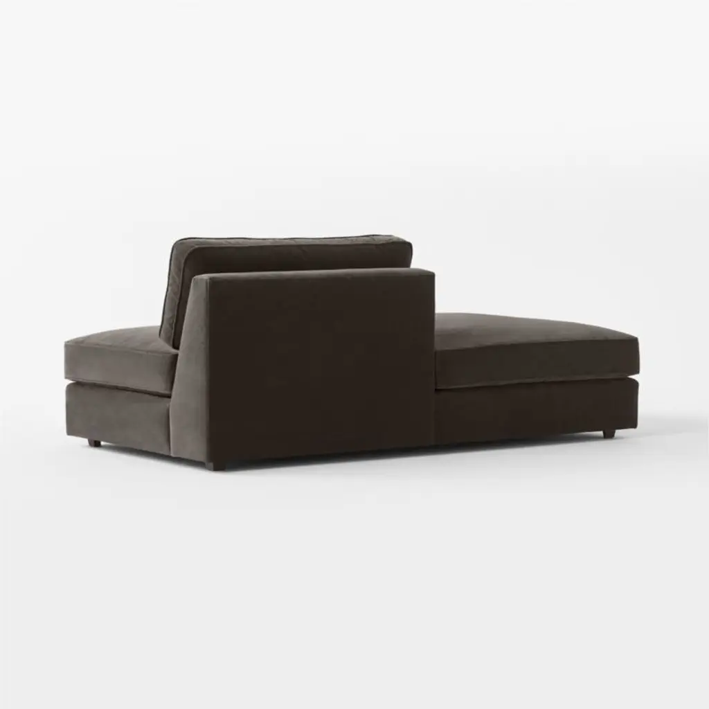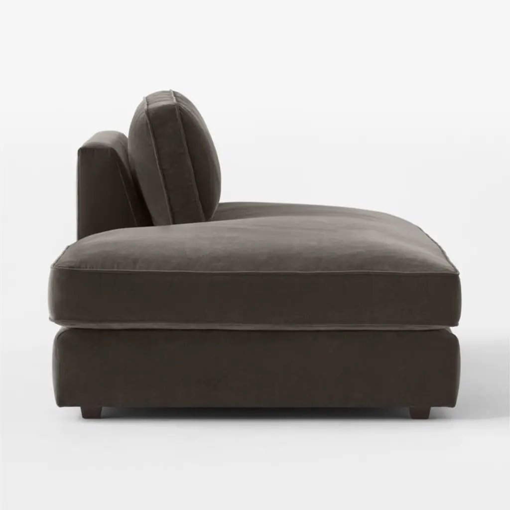 The Malea sectional sofa is the perfect balance of refined, modern style and inviting comfort. Featuring a frame hand-assembled in America from kiln-dried, precision-cut wood with reinforced joinery for durability, the left-arm chaise's slim track arms give the piece a sense of lightness. Charcoal grey performance velvet upholstery woven by a mill operating for six generations in South Carolina offers plush texture, while a welt trim along the frame and cushions keeps the look neat. Packed with an ultra-comfortable feather-and-down blend, the deep cushions are key to the chaise's loungey appeal while giving it just the right amount of support. CB2 exclusive.