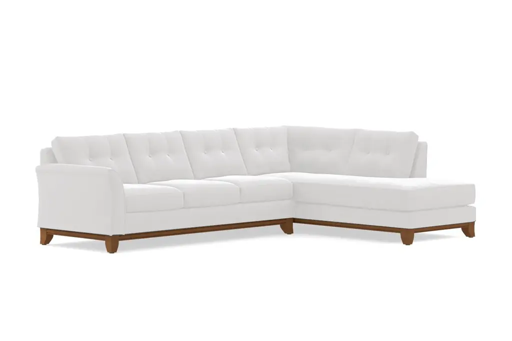 Marco! Polo! Marco! Polo! Fun game, but would people be so eager to jump in the water and find Marco if they were resting on one of his sectional sofas? After all, the Marco sectional at Apt2B has some of the softest, warmest cushioning you've ever seen with the style to match. The combination of back cushion button tufting, rounded edges and a flared armrest on the non-chaise side add some classic charm. But make no mistake - this is a modern 2-piece sectional sofa, as its thick piping and legs in natural, pecan or dark espresso finishes will attest. The Marco Collection is all about keeping it rockin' even when you're in the middle of an afternoon nap. There's space for the entire crew to watch a few episodes of your favorite show. If you're home alone, you can flop across the whole thing with a magazine or some headphones. The breathable fabrics and supportive high-density foam will keep you from sinking down or sweating through. Buy a sectional sofa with your favorite fabric color and configuration, and we'll ship it anywhere in the U.S. We'll send some free fabric samples, too, if it helps you make a better decision.