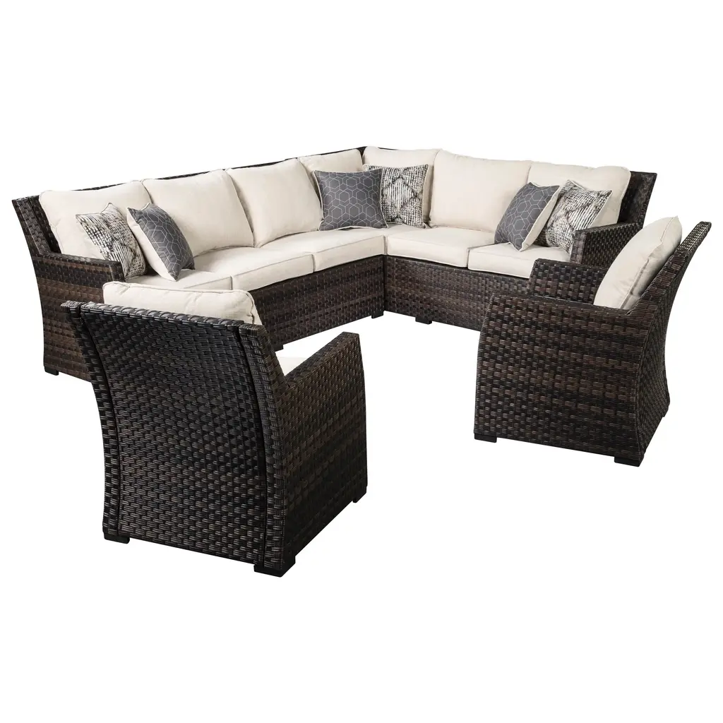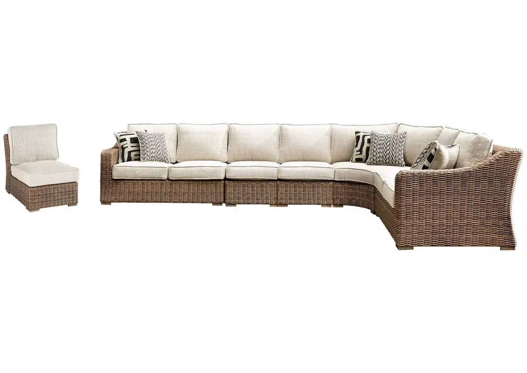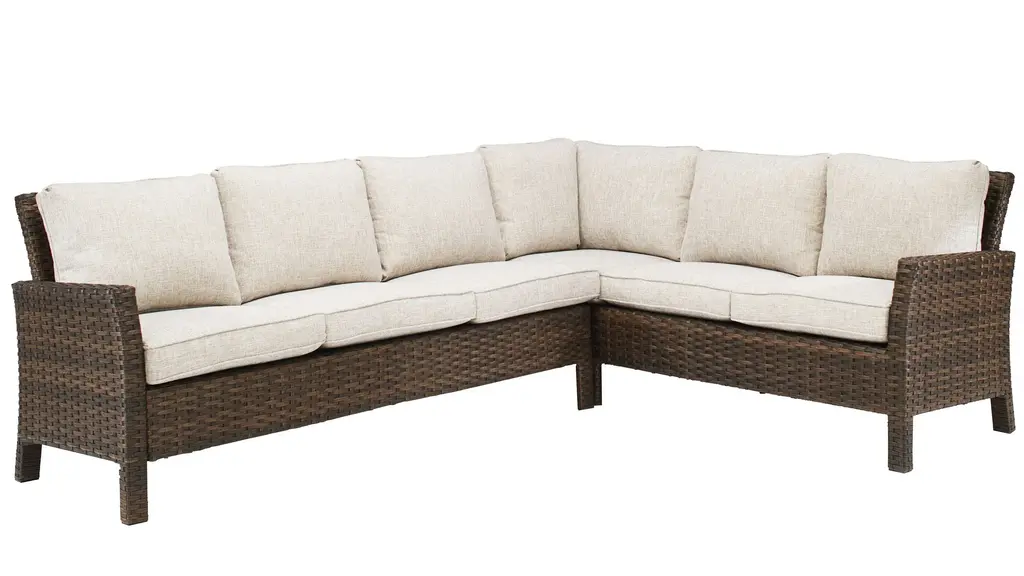 Your favorite family room hangout meets its match outdoors with the Marin 2-pc. sectional! Just what you need for alfresco conversation, napping, watching lawn games, and more, you'll love it throughout the milder seasons. Resin wicker over a rust-free aluminum frame has an upscale vibe that endures, while block feet and slim track arms play nicely in contemporary settings.
