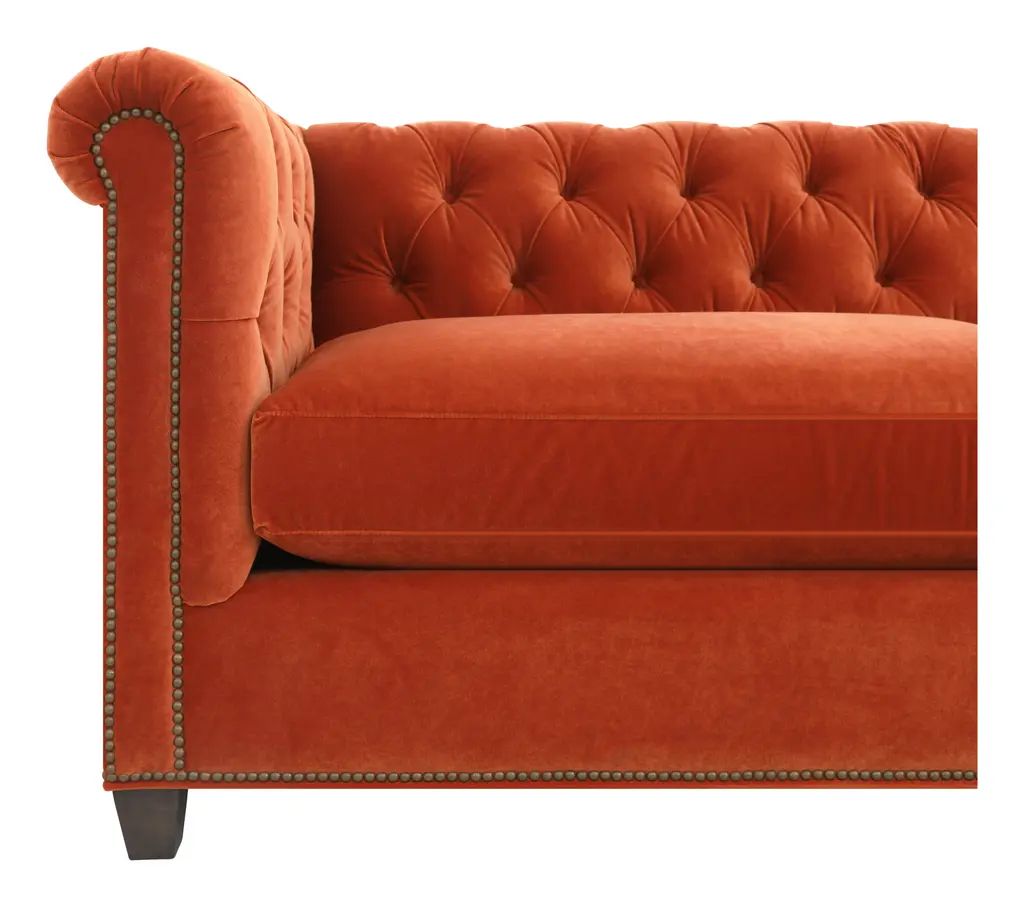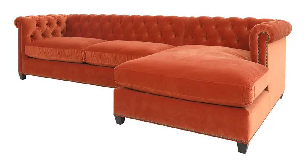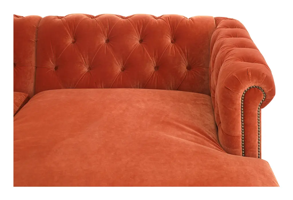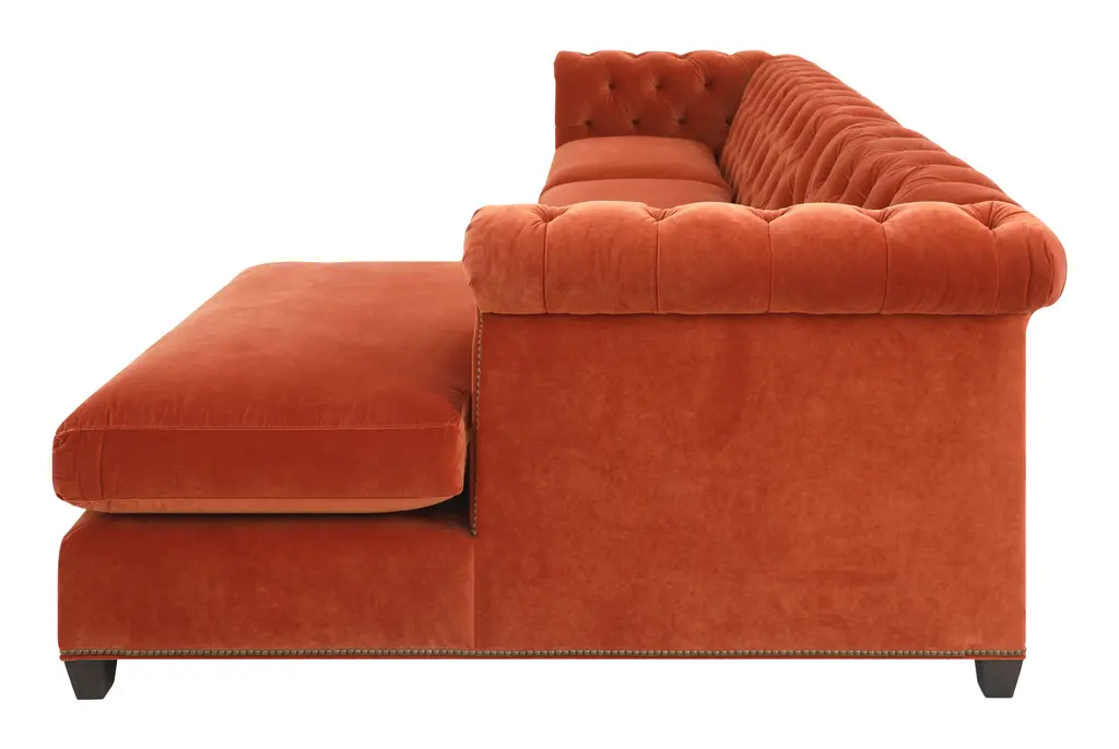 Bring vintage sophistication to your space with our timeless Marlon Sectional. Modeled after the classic Chesterfield form, this sectional pairs sink-in seat cushions with a low-lying, supportive back rest and sheltering rolled arms for a comfortably enveloping sit. Neat button tufting and antique brass nailhead trim