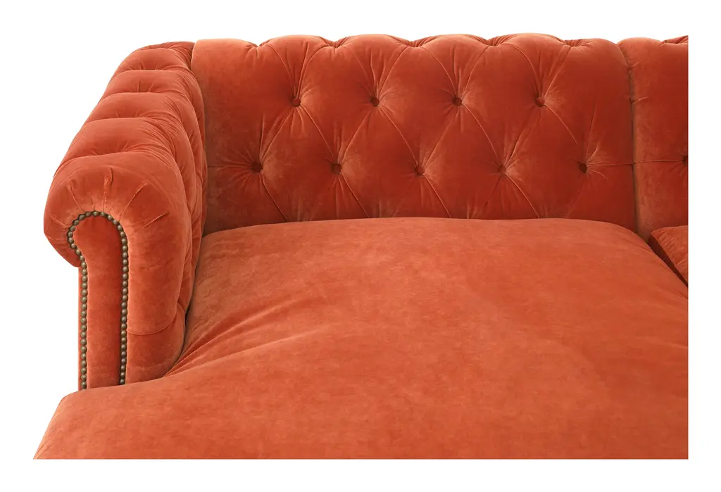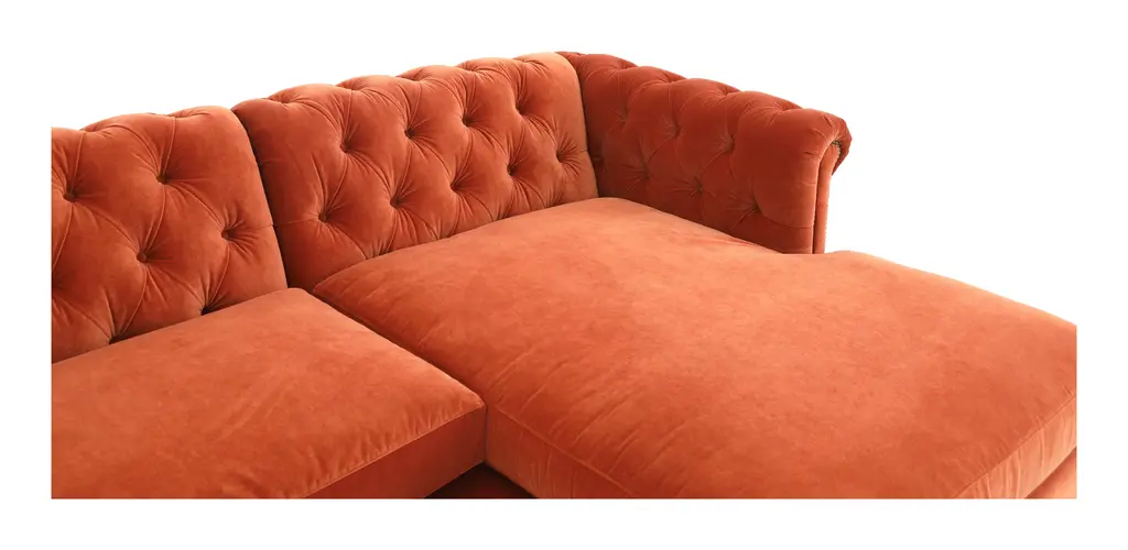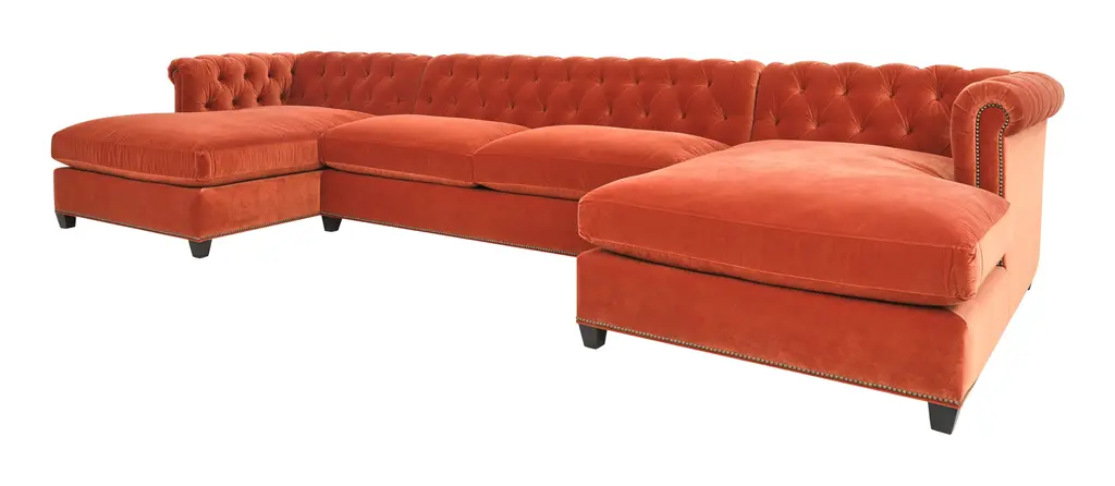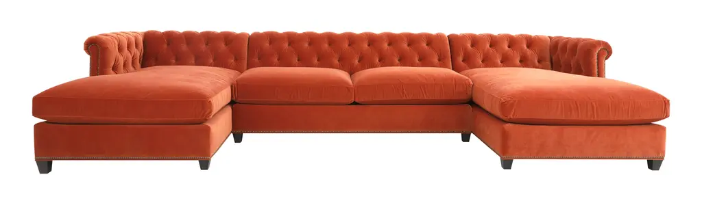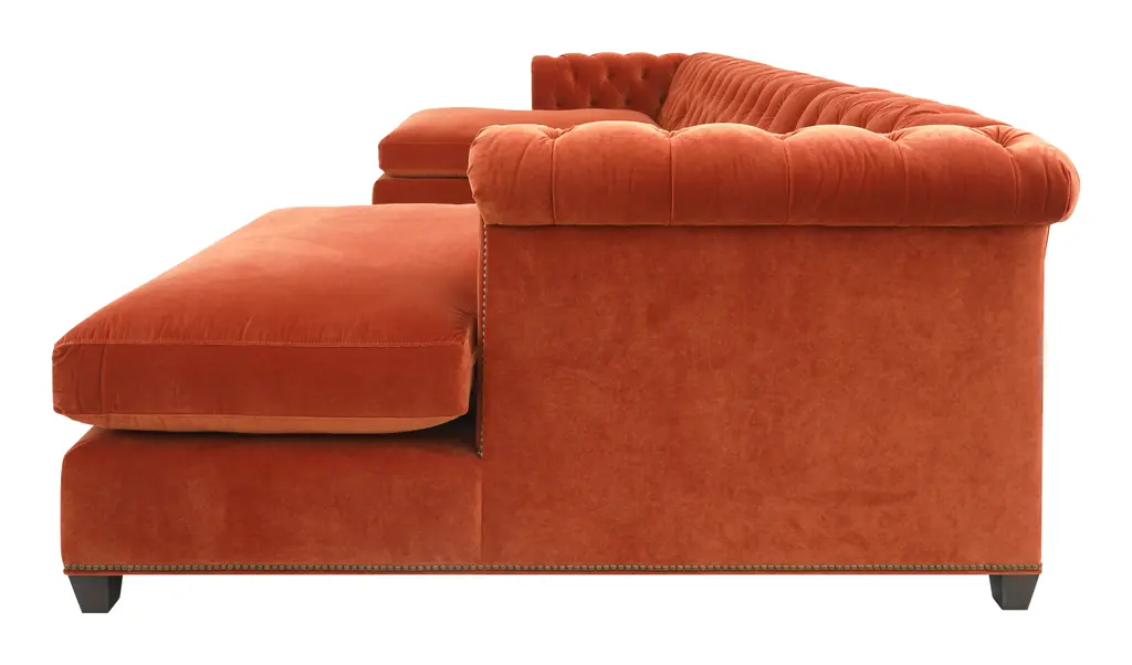 Bring home vintage sophistication with our timeless Marlon Sectional. Modeled after the classic Chesterfield form, this spacious U-shaped sectional pairs sink-in seat cushions with a low-lying, supportive back rest and sheltering rolled arms for a comfortably enveloping sit. Neat button tufting and rows of antique bras