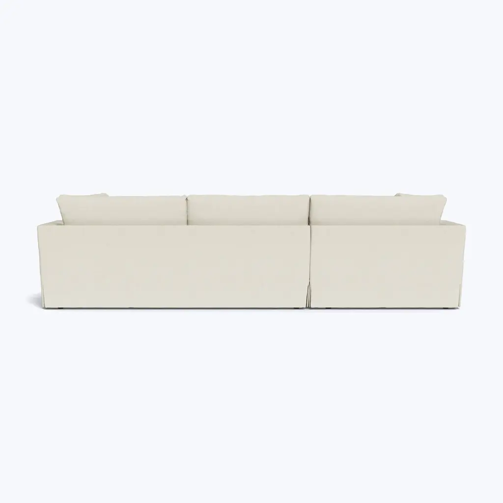 The Martha's Vineyard Slipped Sectional, part of the cherished Cobble Hill collection and a customer favorite at ABC Carpet & Home, brings a blend of laid-back elegance and modern functionality to your living space. Designed for those who value both style and comfort, this spacious 135" sectional offers ample room for family gatherings, movie nights, or stretching out in relaxed luxury.Handcrafted in the USA with a sustainably sourced Goodwood frame, the Martha's Vineyard Sectional combines eco-conscious craftsmanship with enduring quality. The feather-down blend cushions, encased in soft ticking, deliver plush support and exceptional comfort, while the included toss pillows add an extra layer of coziness. This sectional invites you to unwind and enjoy the moments that matter, whether alone or with loved ones.A standout feature of this sectional is its slipcovered design, offering both casual charm and practicality. The slipcovers can be easily removed for cleaning or replaced to refresh your space, making maintenance a breeze. Available in durable cotton or linen fabrics, the slipcover allows you to customize the look of your sectional, whether you prefer classic neutrals or a contemporary palette.In addition to the sectional, the Martha's Vineyard collection includes a variety of pieces to create a cohesive living space. The collection offers options like the 104" grand sofa, 74", 84", and 94" slipped sofas, as well as the chair and a half, ottoman, and chaise, all designed to enhance the relaxed, coordinated feel of your home.With its blend of timeless style, practical design, and luxurious comfort, the Martha's Vineyard Sectional is a perfect choice for those who want a living space that’s as beautiful as it is functional. Whether you're entertaining guests or enjoying a quiet evening, this sectional offers the perfect balance of casual elegance and everyday ease, making it a centerpiece for any home.