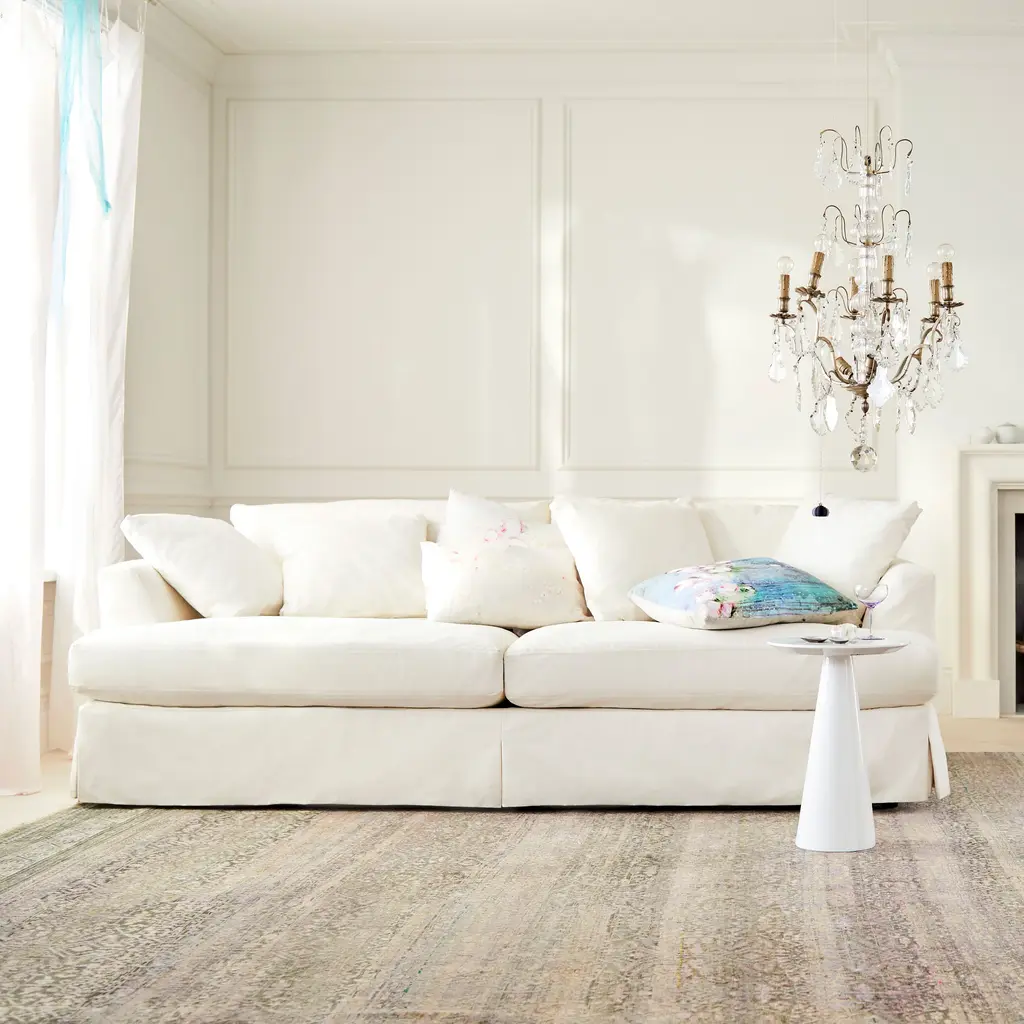 The Martha's Vineyard Slipped Sofa, one of the first pieces in the Cobble Hill collection and still a customer favorite at ABC Carpet & Home, embodies a timeless, laid-back elegance. Available in 74", 84", and 94" sizes, this slipcovered sofa is designed for both comfort and style, offering ample space for two to nap side by side, making it perfect for long, lazy afternoons or casual gatherings. Handmade in the USA with a sustainably sourced Goodwood frame, the Martha's Vineyard Slipped Sofa brings the highest quality craftsmanship while maintaining an eco-conscious approach. The three seat and three back cushions are made from a luxurious feather-down blend encased in soft ticking, ensuring a plush, supportive feel. Complemented by four toss pillows, this sofa is as cozy as it is stylish, making it the ideal place to relax and unwind. One of the defining features of this sofa is its slipcovered design, offering both beauty and practicality. Slipcovers can be easily removed for cleaning or replaced to refresh your space, making maintenance a breeze. The slipcover is available in durable cotton and linen options, allowing you to customize the sofa’s look to match your personal style. Whether you prefer a classic, neutral tone or something more contemporary, the Martha's Vineyard Slipped Sofa adapts effortlessly to your aesthetic and lifestyle needs. In addition to the three sofa sizes, the Martha's Vineyard collection offers a variety of options to complete your living space. For larger rooms or gatherings, the collection includes the spacious 104" grand sofa or the 135" sectional, providing ample seating for family and friends. Complementary pieces such as the Martha's Vineyard chair and a half, ottoman, and chaise allow you to create a relaxed, coordinated look that effortlessly ties your home together. With its blend of enduring style, practicality, and luxurious comfort, the Martha's Vineyard Slipped Sofa continues to be a beloved choice for those who appreciate beauty, functionality, and easy living. Whether it's placed in a family room for everyday use or a cozy living area for more intimate gatherings, this sofa is the perfect combination of casual elegance and everyday ease. The relaxed charm of the Martha's Vineyard collection invites you to experience both comfort and sophistication in your home, making it a staple that will stand the test of time.