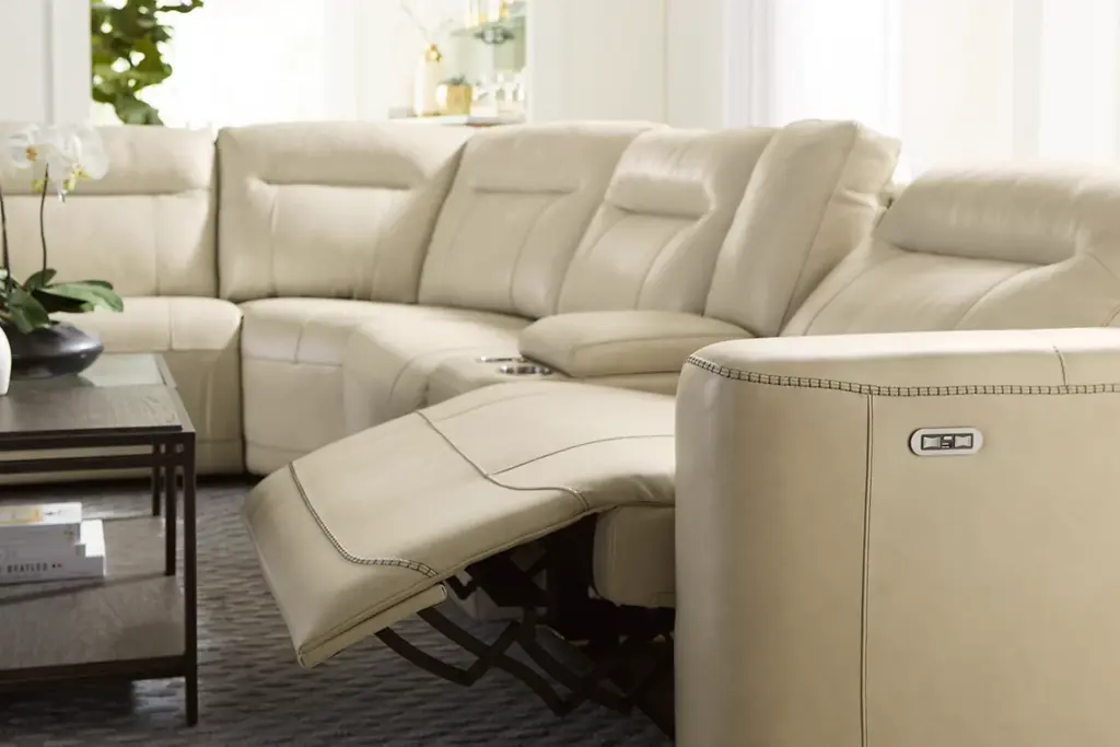 Crafted with extreme comfort and convenience in mind, our Melbourne sectional features smooth, top-grain leather and high-density, tight back cushioning with padded arms. Power reclining capabilities, a center console with USB ports, and generous seating makes this piece a must-have for a relaxing and functional living space you can customize to your desire. Professional installation recommended.