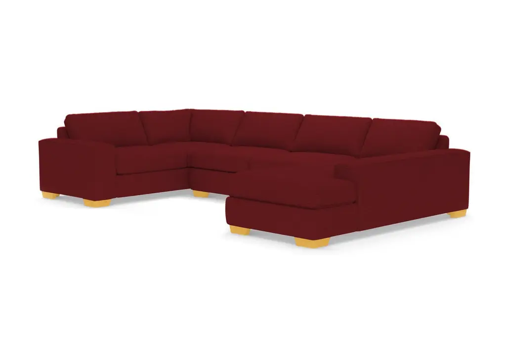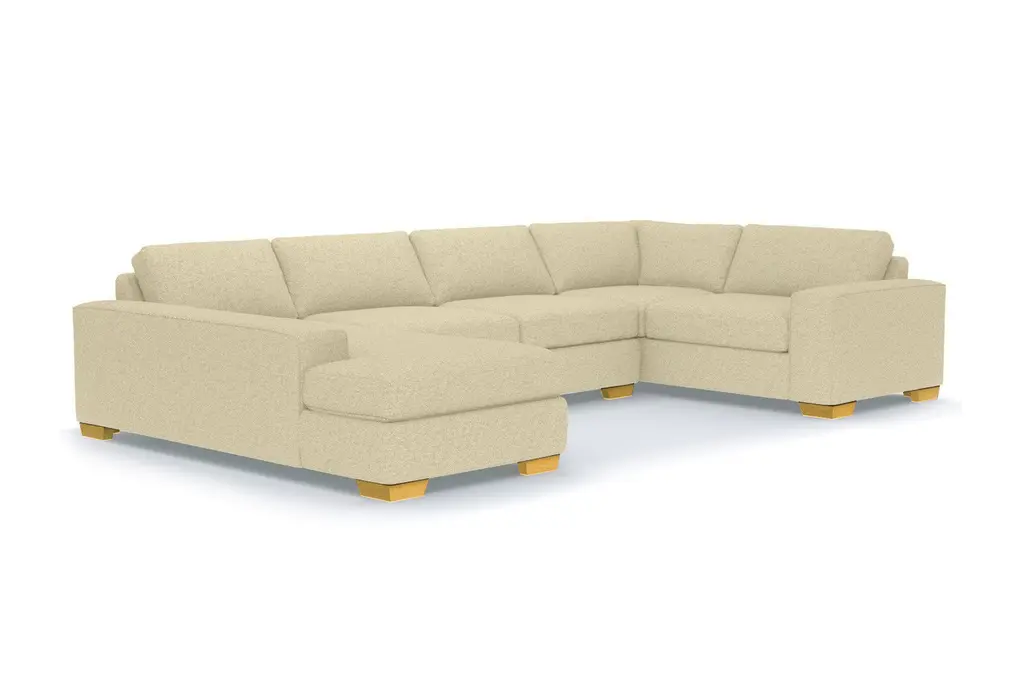 Melrose Place was the hottest show on TV in the 1990s, and now you can bring that same sizzle to your home with this versatile three-piece sectional. (Minus the adultery and backstabbing, of course.) The low-rise design of this huge sectional is distinctly modern without overwhelming the rest of your space. The wide track arms will have people fighting for the end seats, but the middle sections are pretty snuggly as well thanks to the deep seats and foam cushioning. Nearly 40 fabric choices are available, so whether you want a grey modern sectional or a Chicago blue sectional, we will make it happen. The best part about this modular sectional is that each piece is its own distinct furniture. So if you don’t have space for a 12-foot long sectional sofa, you can use it as a separate condo sofa, armless sofa and chaise. The Melrose is made in the U.S. with a limited lifetime warranty on frame and craftsmanship (which is more than can be said for the TV show.) Be the hero of your own life drama with our affordable prices on U.S.-made furniture!