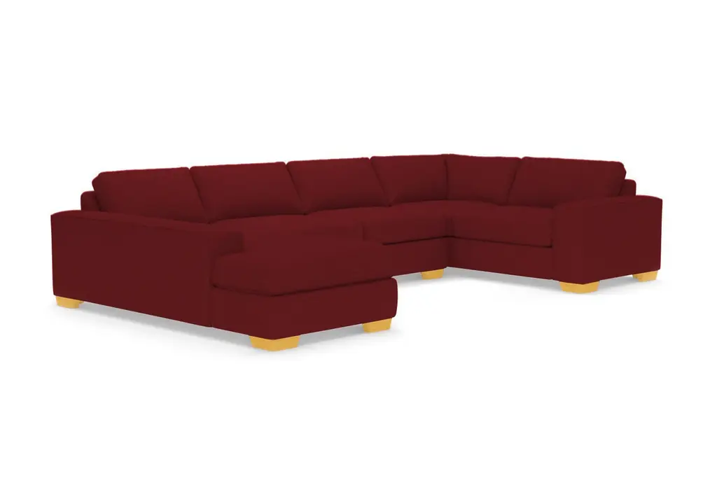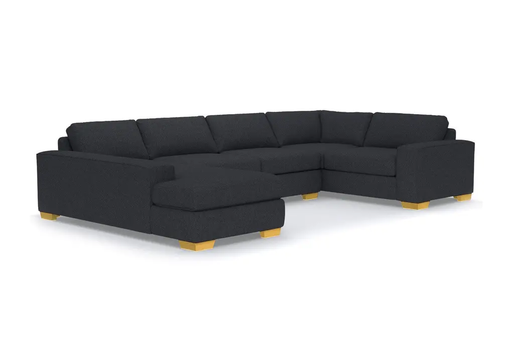 Melrose Place was the hottest show on TV in the 1990s, and now you can bring that same sizzle to your home with this versatile three-piece sectional. (Minus the adultery and backstabbing, of course.) The low-rise design of this huge sectional is distinctly modern without overwhelming the rest of your space. The wide track arms will have people fighting for the end seats, but the middle sections are pretty snuggly as well thanks to the deep seats and foam cushioning. Nearly 40 fabric choices are available, so whether you want a grey modern sectional or a Chicago blue sectional, we will make it happen. The best part about this modular sectional is that each piece is its own distinct furniture. So if you don’t have space for a 12-foot long sectional sofa, you can use it as a separate condo sofa, armless sofa and chaise. The Melrose is made in the U.S. with a limited lifetime warranty on frame and craftsmanship (which is more than can be said for the TV show.) Be the hero of your own life drama with our affordable prices on U.S.-made furniture!