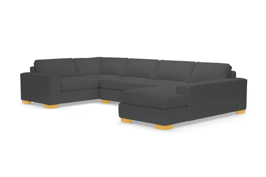 Melrose Place was the hottest show on TV in the 1990s, and now you can bring that same sizzle to your home with this versatile three-piece sectional. (Minus the adultery and backstabbing, of course.) The low-rise design of this huge sectional is distinctly modern without overwhelming the rest of your space. The wide track arms will have people fighting for the end seats, but the middle sections are pretty snuggly as well thanks to the deep seats and foam cushioning. Nearly 40 fabric choices are available, so whether you want a grey modern sectional or a Chicago blue sectional, we will make it happen. The best part about this modular sectional is that each piece is its own distinct furniture. So if you don’t have space for a 12-foot long sectional sofa, you can use it as a separate condo sofa, armless sofa and chaise. The Melrose is made in the U.S. with a limited lifetime warranty on frame and craftsmanship (which is more than can be said for the TV show.) Be the hero of your own life drama with our affordable prices on U.S.-made furniture!