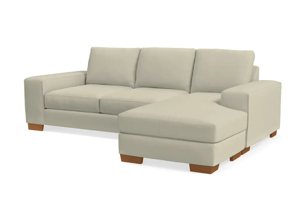 Cozy up to the Melrose Reversible Chaise Sofa and make your space more inviting. This best-selling sofa offers the versatility you need for rearranging furniture and accommodating any future moves. Learn more about what makes this one of our best-selling sofas and how you can customize it to suit your space. Timeless Style, Endless Versatility The Melrose Reversible Chaise Lounge Sofa is designed like a traditional sectional, but it offers double the options for arranging your furniture. This Apt2B Modern Furniture sofa features a reversible chaise ottoman that can be placed on either end, allowing for a left-side or right-side chaise lounge sofa depending on what works best for your needs and your room layout. But that’s only the beginning when it comes to what this stylish reversible chaise couch has to offer. Wide track arms and a low-rise silhouette add designer flair to the Melrose reversible sectional couch, and the plush cushions deliver the perfect combination of comfort and support. Create a Custom Chaise Lounge Couch The Melrose couch has style to spare, especially once you customize it with your preferred color and leg finish. Choose from over 50 upholstery options, including a wide range of colors and various performance fabric types. Pecan, natural and espresso tones are available for the leg finish to complement your decor. This beautiful sofa with a chaise lounge is made in the USA, and the workmanship comes with a lifetime warranty.