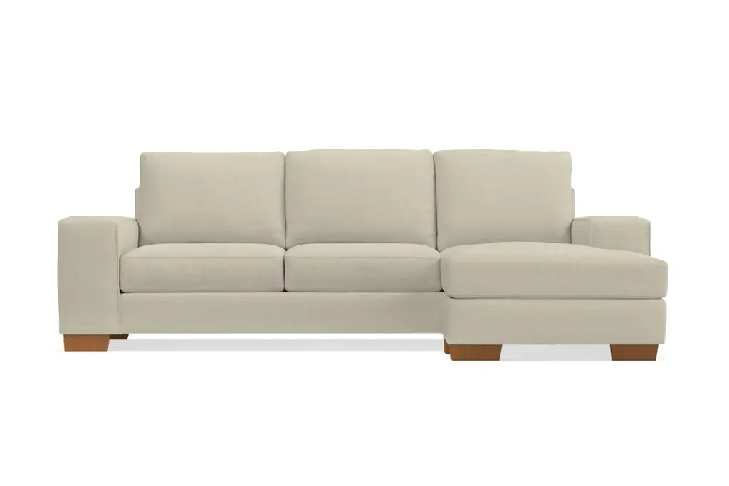 Cozy up to the Melrose Reversible Chaise Sofa and make your space more inviting. This best-selling sofa offers the versatility you need for rearranging furniture and accommodating any future moves. Learn more about what makes this one of our best-selling sofas and how you can customize it to suit your space. Timeless Style, Endless Versatility The Melrose Reversible Chaise Lounge Sofa is designed like a traditional sectional, but it offers double the options for arranging your furniture. This Apt2B Modern Furniture sofa features a reversible chaise ottoman that can be placed on either end, allowing for a left-side or right-side chaise lounge sofa depending on what works best for your needs and your room layout. But that’s only the beginning when it comes to what this stylish reversible chaise couch has to offer. Wide track arms and a low-rise silhouette add designer flair to the Melrose reversible sectional couch, and the plush cushions deliver the perfect combination of comfort and support. Create a Custom Chaise Lounge Couch The Melrose couch has style to spare, especially once you customize it with your preferred color and leg finish. Choose from over 50 upholstery options, including a wide range of colors and various performance fabric types. Pecan, natural and espresso tones are available for the leg finish to complement your decor. This beautiful sofa with a chaise lounge is made in the USA, and the workmanship comes with a lifetime warranty.