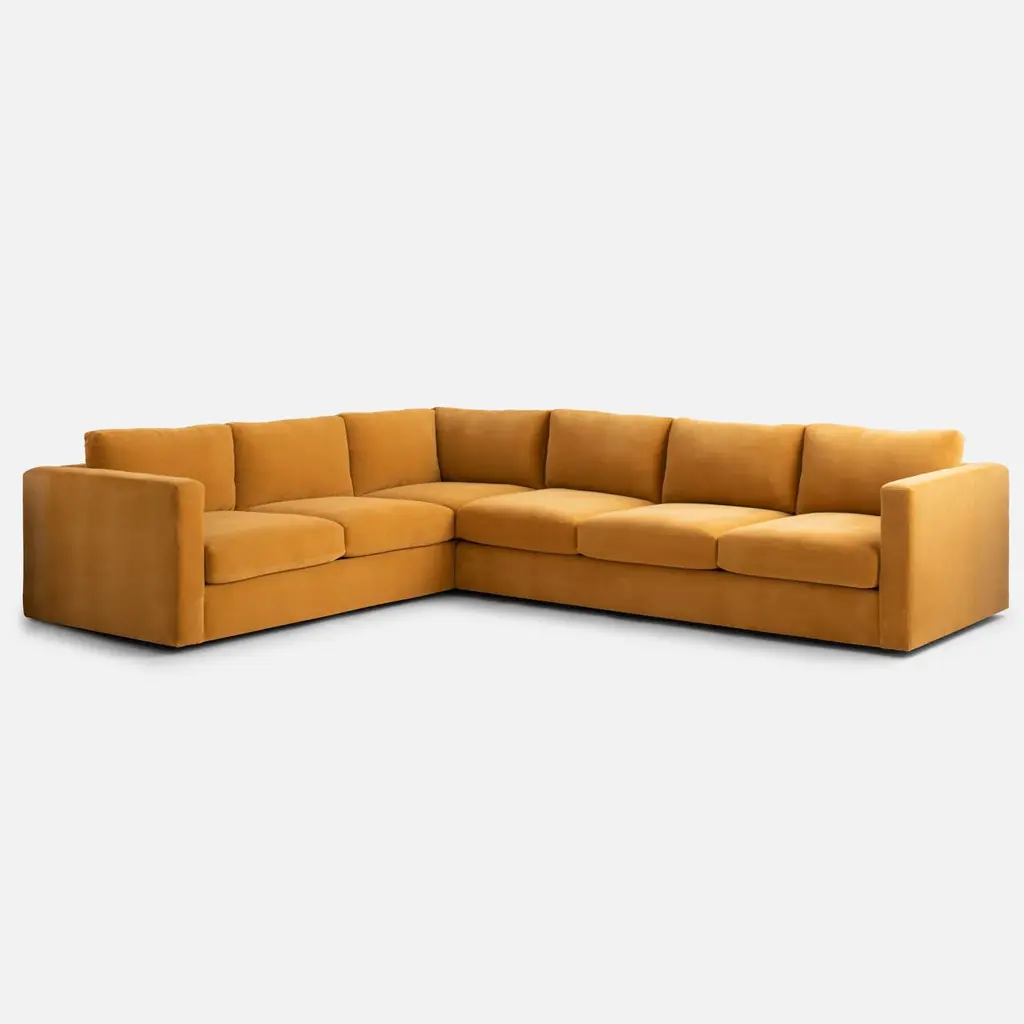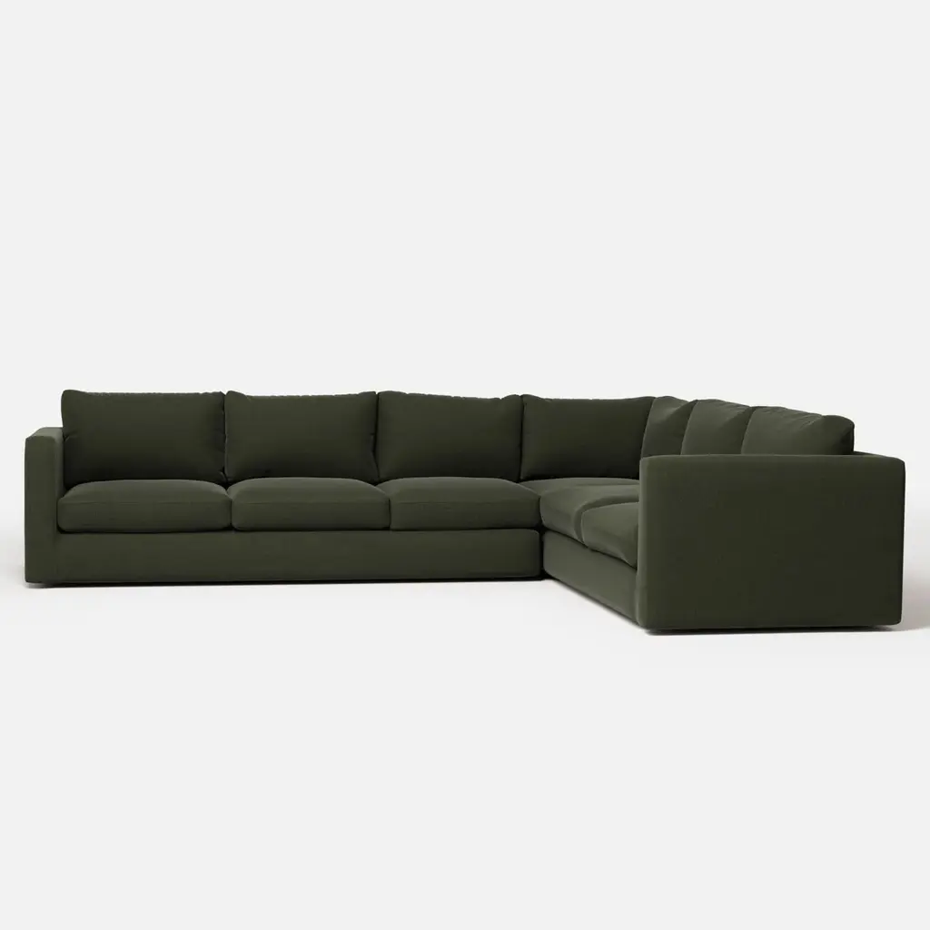 Drawing inspiration from the iconic American mid-century designer Milo Baughman, the Milo Sectional pays homage to the principles of proportion, simplicity, and comfort. Crafted to offer a relaxed and medium-soft seating experience, our cushions feature high resiliency foam, ensuring they maintain their shape even with frequent use. For an extra layer of plush softness, the back cushions are thoughtfully filled with hypoallergenic Trillium fiber. The sectional’s frame is meticulously constructed from kiln-dried hardwood, utilizing interlocking mortise and tenon joints for enhanced stability. Handmade in California, each fabric has been meticulously curated for their beauty, texture, and durability. A Schoolhouse Original. Order Fabric Swatches