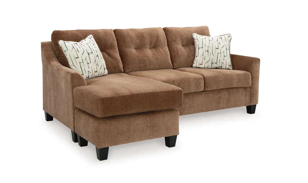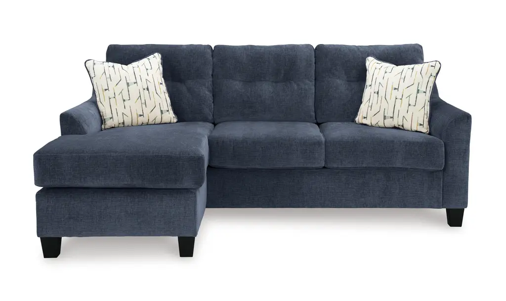 Experience the perfect blend of urban contemporary and mid-century design with the Amity Bay Queen Sofa Chaise Sleeper. This versatile piece offers both style and functionality, making it an ideal addition to any modern living space. The supremely soft upholstery, highlighted by a hint of luster, adds a touch of elegance and movement to your decor.Designed for comfort and convenience, the sofa features gently flared arms and tufted back cushions, providing superior style and support. The pull-out queen mattress, crafted from high-quality memory foam, ensures a restful night's sleep for your overnight guests. The memory foam mattress is encased in damask ticking, offering enhanced airflow for a cooler, more comfortable sleep. The Amity Bay Queen Sofa Chaise Sleeper boasts a durable corner-blocked frame, attached tufted back, and reversible loose seat cushions. High-resiliency foam cushions wrapped in thick poly fiber, along with included accent pillows filled with soft polyfill, enhance the comfort and longevity of this sofa. Tapered accent legs complete the look, adding a modern touch to this classic piece.