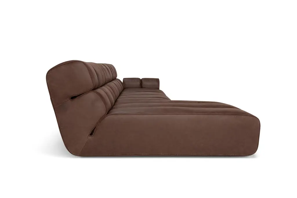 Sectional sofa Palmo by Amura Lab Designer: Emanuel GarganoModel shown: Textile - Leather Old Velvet 2064Inspired by the natural gesture of an opening hand, Palmo is the new living concept designed by Emanuel Gargano.The leather folds become the exceptional characteristics of its embracing nature, as an unmistakable sign that takes us back to the roots of our history.The modular elements design the space, taking turns the most Classic shapes to the most irregular and free compositions, while the embracing padding softness recalls his warm nature that is always ready to host in the intimacy of its shapes.Not a simple sofa, but a new and deeper interpretation which aims to give back to the living, its primary function inside the houses in its form and concept.Emanuel Gargano was born in Assisi, Italy, where he received his creative training and where he is still based. After his studies in Urbino, he gathered international professional experience in London and NewYork. Today his professional life is divided between his office in London and his workshop in Assisi. He has designed for major Italian design companies and received numerous international awards, such as the Red Dot Design Award, the Good Design Award, the German Design Award and the Compasso d’Oro.