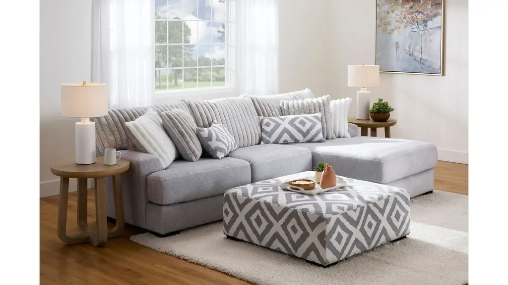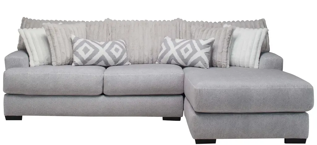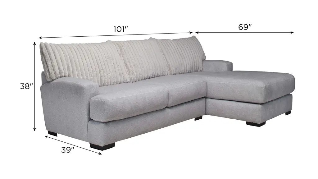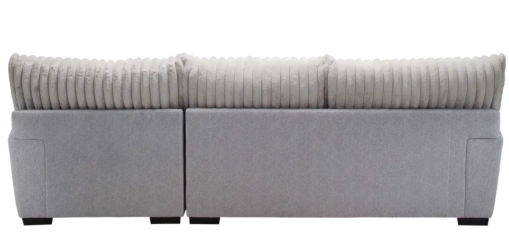 Lean into bold texture and blissful comfort with the faux fur chic of the Mondo 2-pc. sofa chaise. Designed for visual impact and enduring seating comfort, the silvery gray Mondo transforms your home into a haven of plushy elegance. Combine sectional pieces to create endless configurations to suit your home and lifestyle.