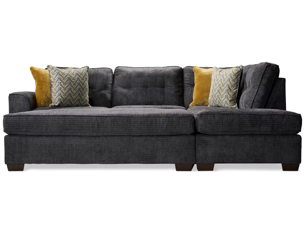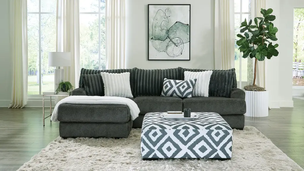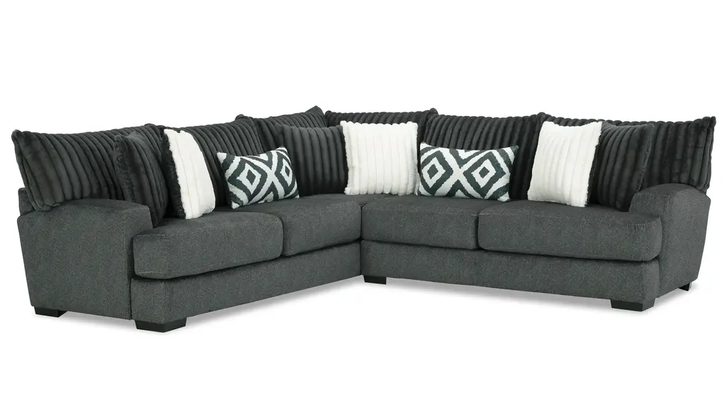 Lean into bold texture and blissful comfort with the faux fur chic of the Mondo 2-pc. sofa chaise. Designed for visual impact and enduring seating comfort, the silvery gray Mondo transforms your home into a haven of plushy elegance. Combine sectional pieces to create endless configurations to suit your home and lifestyle.