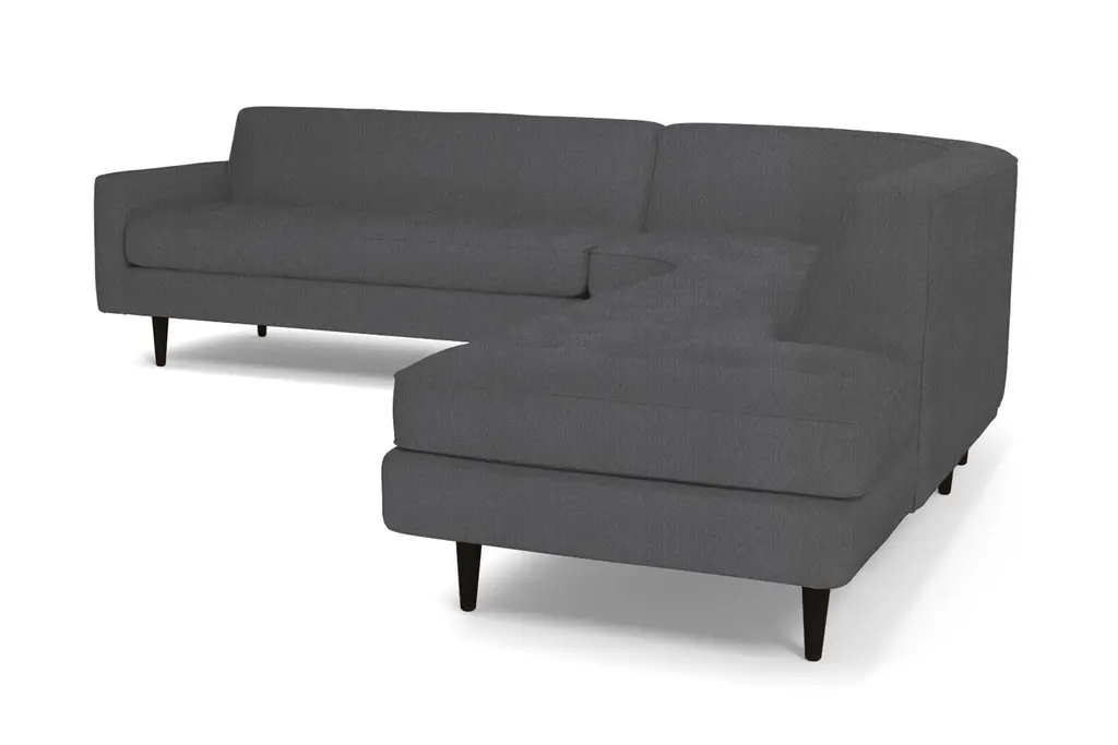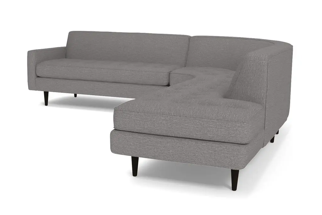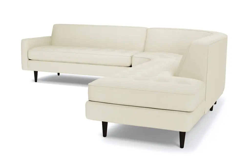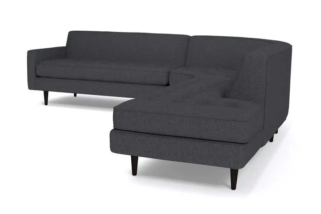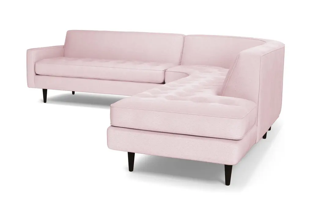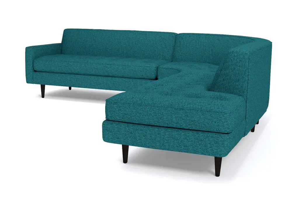 The Monroe Collection from Kyle Schuneman is work of ultra-modern art and this three-piece sectional sofa steals the show. Absolutely gorgeous with its sophisticated button-tufted cushions and sleek tight back, it looks like it came straight from a classic Hollywood film set. And those curves! This sofa is perfect for sectioning off a wide-open space or creating a cozy alcove to relax and entertain. The piping along the cushions adds texture and the tapered wooden legs elevate its modern style. And, despite the fact that it's three pieces, it doesn't take up a ton of space. We have plenty of colors and fabrics to choose from, so whether you're looking for an understated piece or a retro green sectional, you'll find it at Apt2B. With a Mad Men-esque silhouette, The Monroe is a perfect way to add a hip factor to any room. The clean lines and simple shape make it perfect for any small space. It packs a big punch without taking up a lot of square footage.