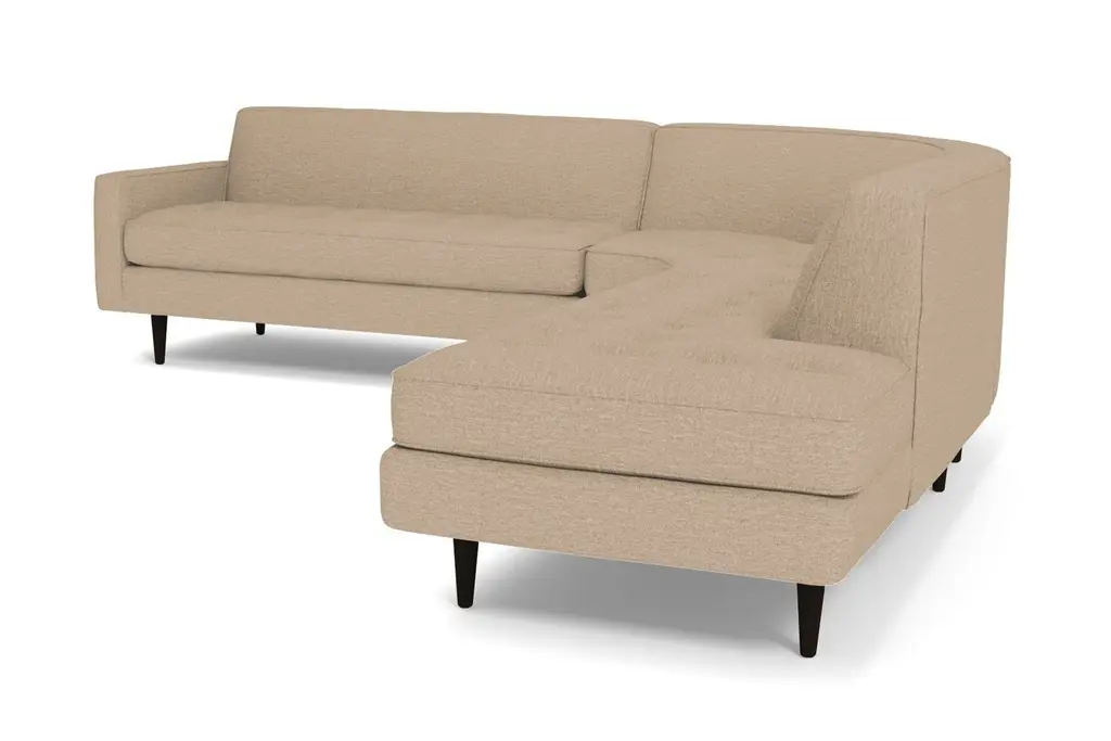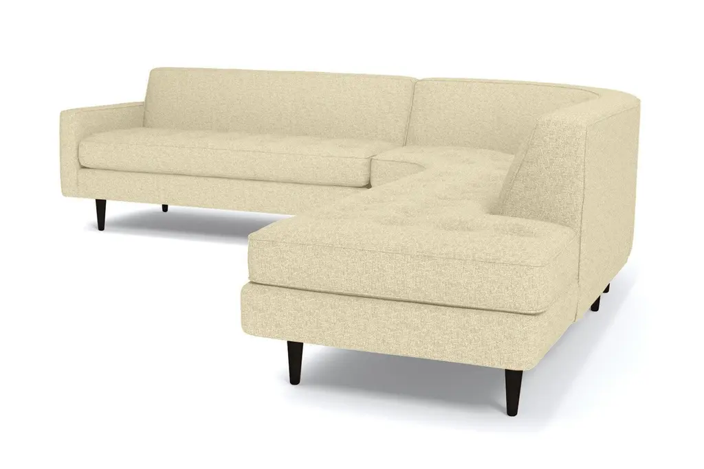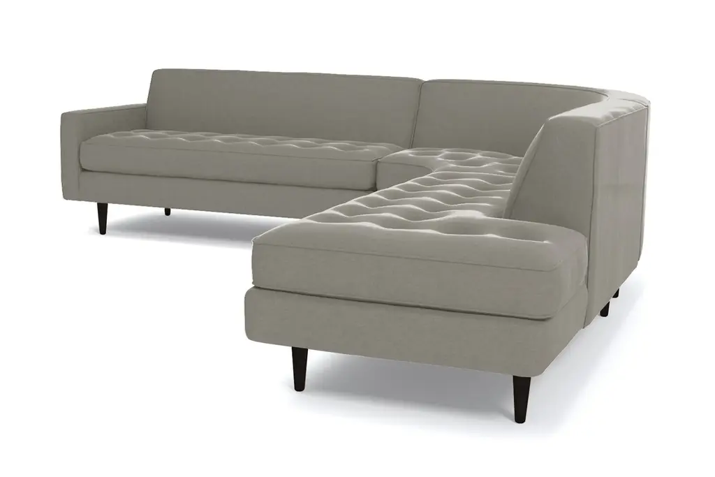 The Monroe Collection from Kyle Schuneman is work of ultra-modern art and this three-piece sectional sofa steals the show. Absolutely gorgeous with its sophisticated button-tufted cushions and sleek tight back, it looks like it came straight from a classic Hollywood film set. And those curves! This sofa is perfect for sectioning off a wide-open space or creating a cozy alcove to relax and entertain. The piping along the cushions adds texture and the tapered wooden legs elevate its modern style. And, despite the fact that it's three pieces, it doesn't take up a ton of space. We have plenty of colors and fabrics to choose from, so whether you're looking for an understated piece or a retro green sectional, you'll find it at Apt2B. With a Mad Men-esque silhouette, The Monroe is a perfect way to add a hip factor to any room. The clean lines and simple shape make it perfect for any small space. It packs a big punch without taking up a lot of square footage.