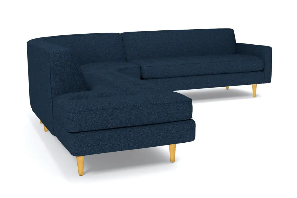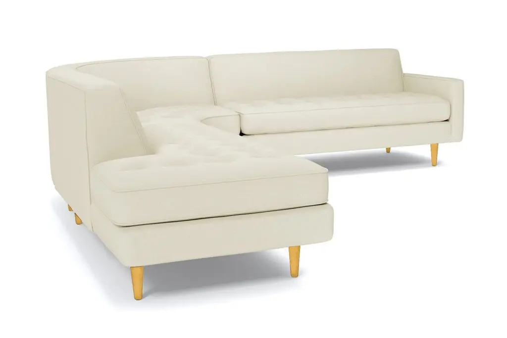 The Monroe Collection from Kyle Schuneman is work of ultra-modern art and this three-piece sectional sofa steals the show. Absolutely gorgeous with its sophisticated button-tufted cushions and sleek tight back, it looks like it came straight from a classic Hollywood film set. And those curves! This sofa is perfect for sectioning off a wide-open space or creating a cozy alcove to relax and entertain. The piping along the cushions adds texture and the tapered wooden legs elevate its modern style. And, despite the fact that it's three pieces, it doesn't take up a ton of space. We have plenty of colors and fabrics to choose from, so whether you're looking for an understated piece or a retro green sectional, you'll find it at Apt2B. With a Mad Men-esque silhouette, The Monroe is a perfect way to add a hip factor to any room. The clean lines and simple round couch shape make it perfect for any small space. It packs a big punch without taking up a lot of square footage.