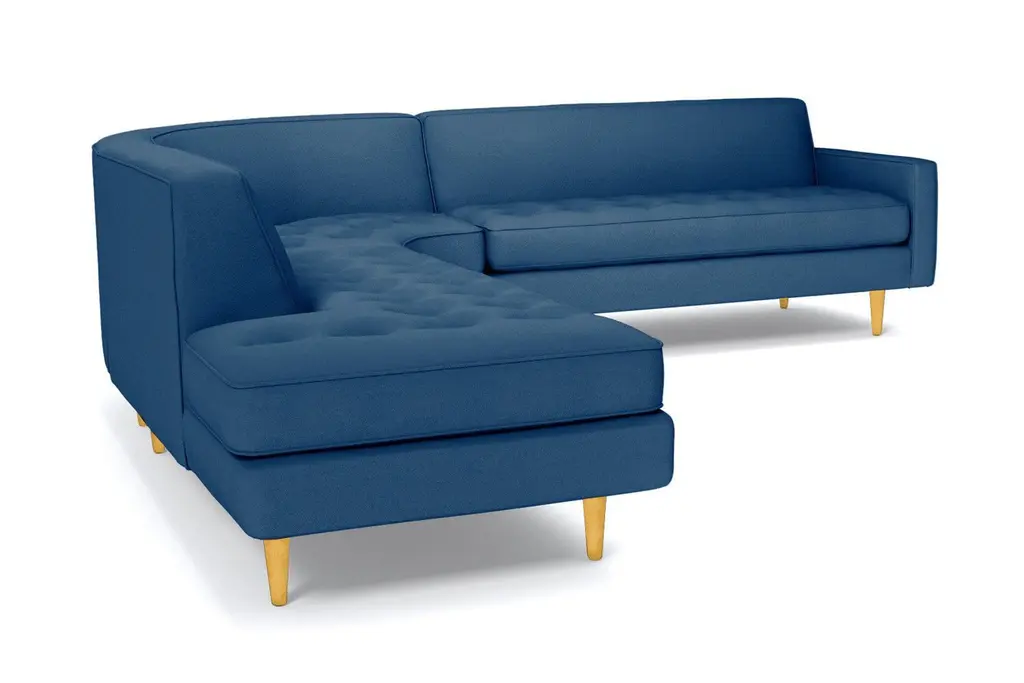 The Monroe Collection from Kyle Schuneman is work of ultra-modern art and this three-piece sectional sofa steals the show. Absolutely gorgeous with its sophisticated button-tufted cushions and sleek tight back, it looks like it came straight from a classic Hollywood film set. And those curves! This sofa is perfect for sectioning off a wide-open space or creating a cozy alcove to relax and entertain. The piping along the cushions adds texture and the tapered wooden legs elevate its modern style. And, despite the fact that it's three pieces, it doesn't take up a ton of space. We have plenty of colors and fabrics to choose from, so whether you're looking for an understated piece or a retro green sectional, you'll find it at Apt2B. With a Mad Men-esque silhouette, The Monroe is a perfect way to add a hip factor to any room. The clean lines and simple round couch shape make it perfect for any small space. It packs a big punch without taking up a lot of square footage.