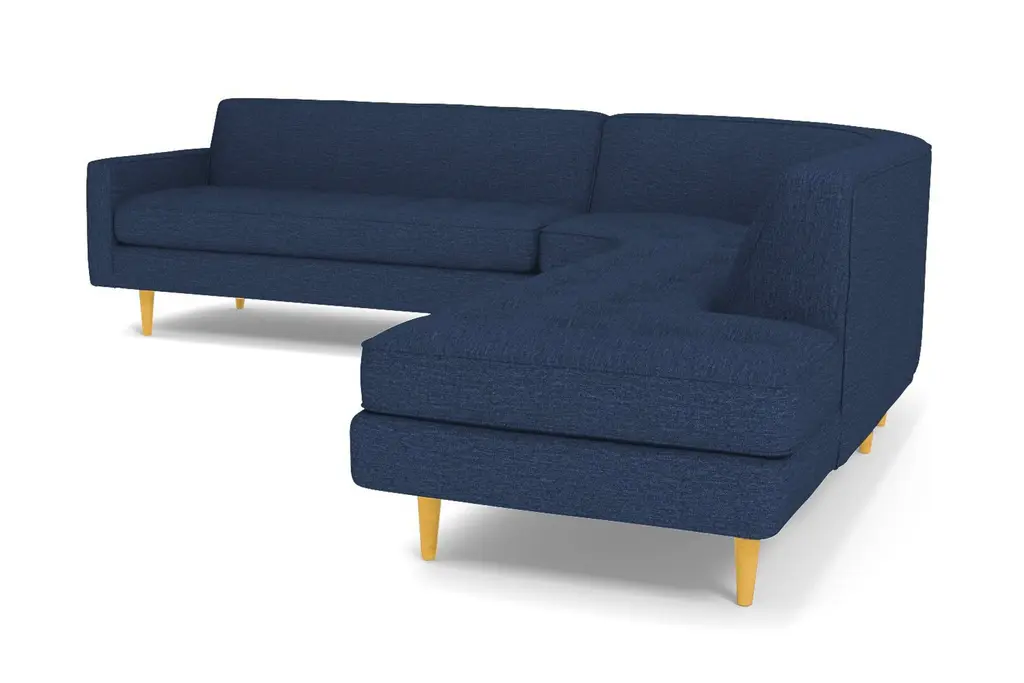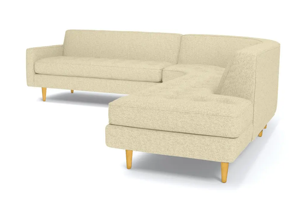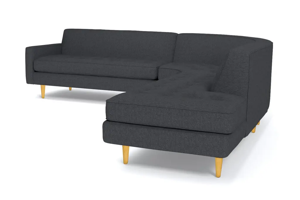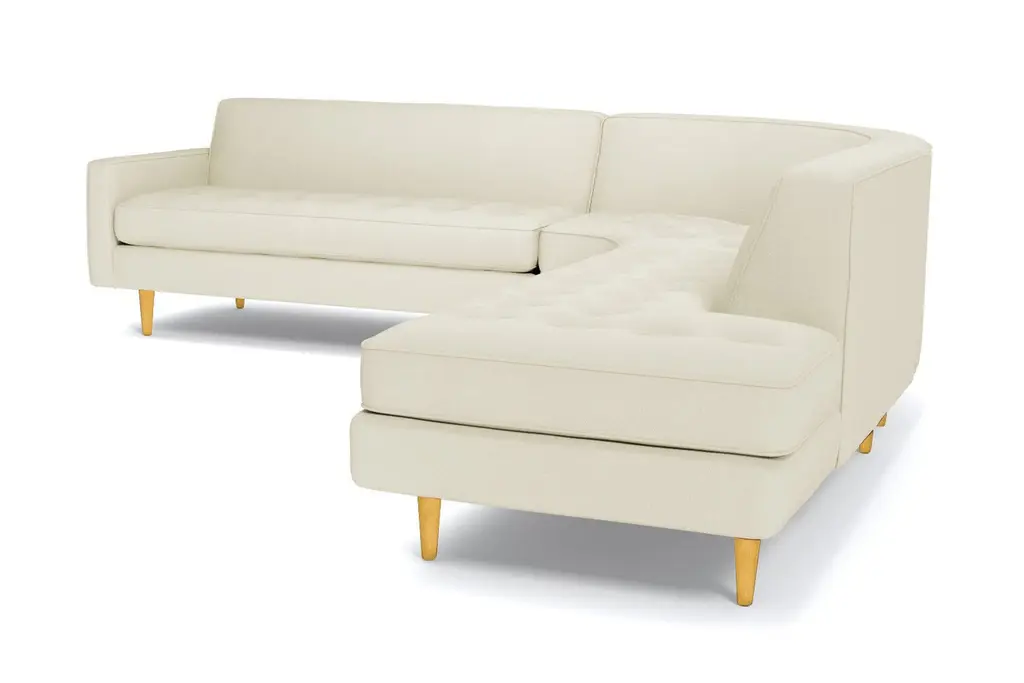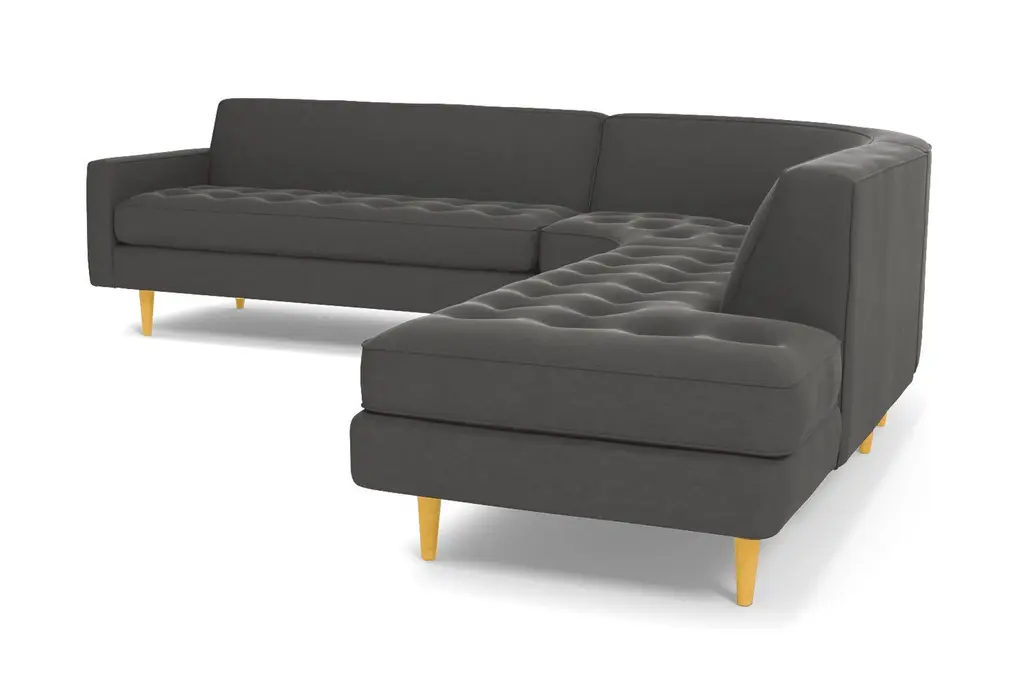 The Monroe Collection from Kyle Schuneman is work of ultra-modern art and this three-piece sectional sofa steals the show. Absolutely gorgeous with its sophisticated button-tufted cushions and sleek tight back, it looks like it came straight from a classic Hollywood film set. And those curves! This sofa is perfect for sectioning off a wide-open space or creating a cozy alcove to relax and entertain. The piping along the cushions adds texture and the tapered wooden legs elevate its modern style. And, despite the fact that it's three pieces, it doesn't take up a ton of space. We have plenty of colors and fabrics to choose from, so whether you're looking for an understated piece or a retro green sectional, you'll find it at Apt2B. With a Mad Men-esque silhouette, The Monroe is a perfect way to add a hip factor to any room. The clean lines and simple round couch shape make it perfect for any small space. It packs a big punch without taking up a lot of square footage.