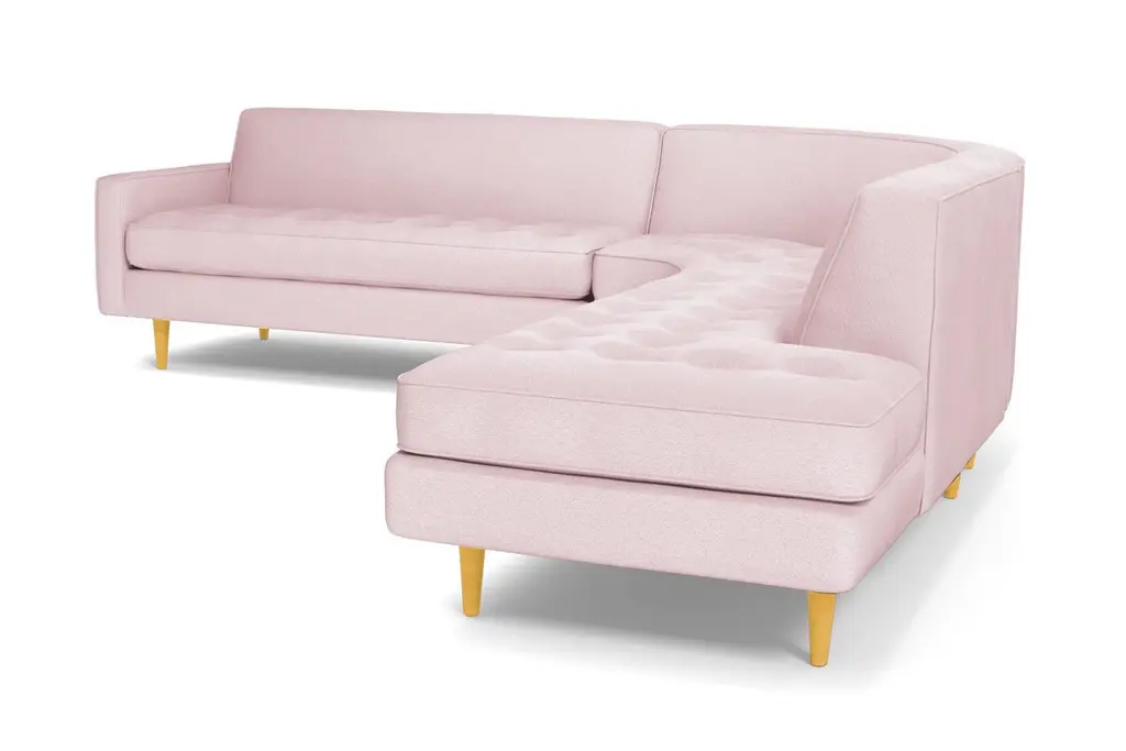 The Monroe Collection from Kyle Schuneman is work of ultra-modern art and this three-piece sectional sofa steals the show. Absolutely gorgeous with its sophisticated button-tufted cushions and sleek tight back, it looks like it came straight from a classic Hollywood film set. And those curves! This sofa is perfect for sectioning off a wide-open space or creating a cozy alcove to relax and entertain. The piping along the cushions adds texture and the tapered wooden legs elevate its modern style. And, despite the fact that it's three pieces, it doesn't take up a ton of space. We have plenty of colors and fabrics to choose from, so whether you're looking for an understated piece or a retro green sectional, you'll find it at Apt2B. With a Mad Men-esque silhouette, The Monroe is a perfect way to add a hip factor to any room. The clean lines and simple round couch shape make it perfect for any small space. It packs a big punch without taking up a lot of square footage.