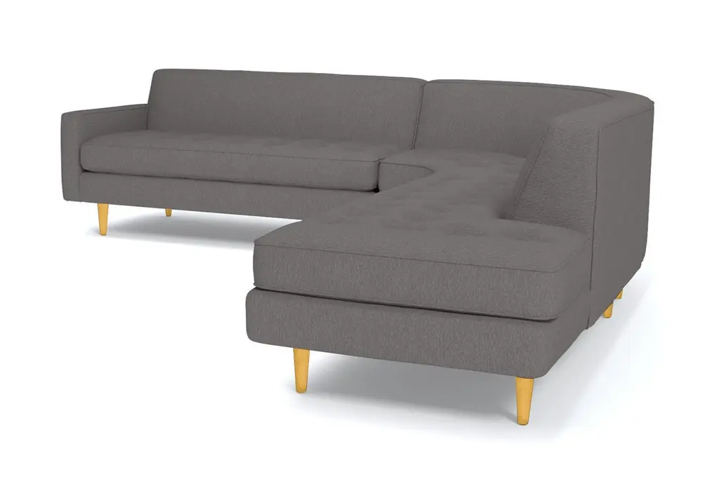 The Monroe Collection from Kyle Schuneman is work of ultra-modern art and this three-piece sectional sofa steals the show. Absolutely gorgeous with its sophisticated button-tufted cushions and sleek tight back, it looks like it came straight from a classic Hollywood film set. And those curves! This sofa is perfect for sectioning off a wide-open space or creating a cozy alcove to relax and entertain. The piping along the cushions adds texture and the tapered wooden legs elevate its modern style. And, despite the fact that it's three pieces, it doesn't take up a ton of space. We have plenty of colors and fabrics to choose from, so whether you're looking for an understated piece or a retro green sectional, you'll find it at Apt2B. With a Mad Men-esque silhouette, The Monroe is a perfect way to add a hip factor to any room. The clean lines and simple round couch shape make it perfect for any small space. It packs a big punch without taking up a lot of square footage.