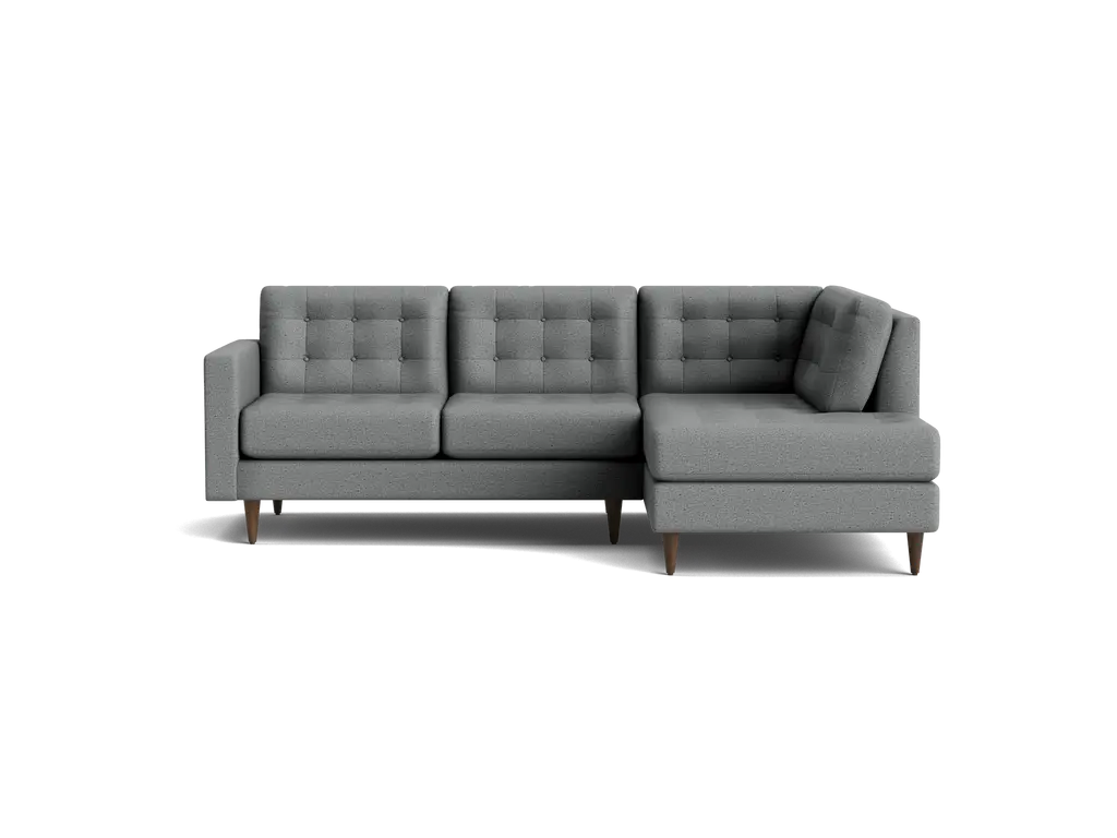 The Monroe Collection from Kyle Schuneman is work of ultra-modern art and this three-piece sectional sofa steals the show. Absolutely gorgeous with its sophisticated button-tufted cushions and sleek tight back, it looks like it came straight from a classic Hollywood film set. And those curves! This sofa is perfect for sectioning off a wide-open space or creating a cozy alcove to relax and entertain. The piping along the cushions adds texture and the tapered wooden legs elevate its modern style. And, despite the fact that it's three pieces, it doesn't take up a ton of space. We have plenty of colors and fabrics to choose from, so whether you're looking for an understated piece or a retro green sectional, you'll find it at Apt2B. With a Mad Men-esque silhouette, The Monroe is a perfect way to add a hip factor to any room. The clean lines and simple round couch shape make it perfect for any small space. It packs a big punch without taking up a lot of square footage.
