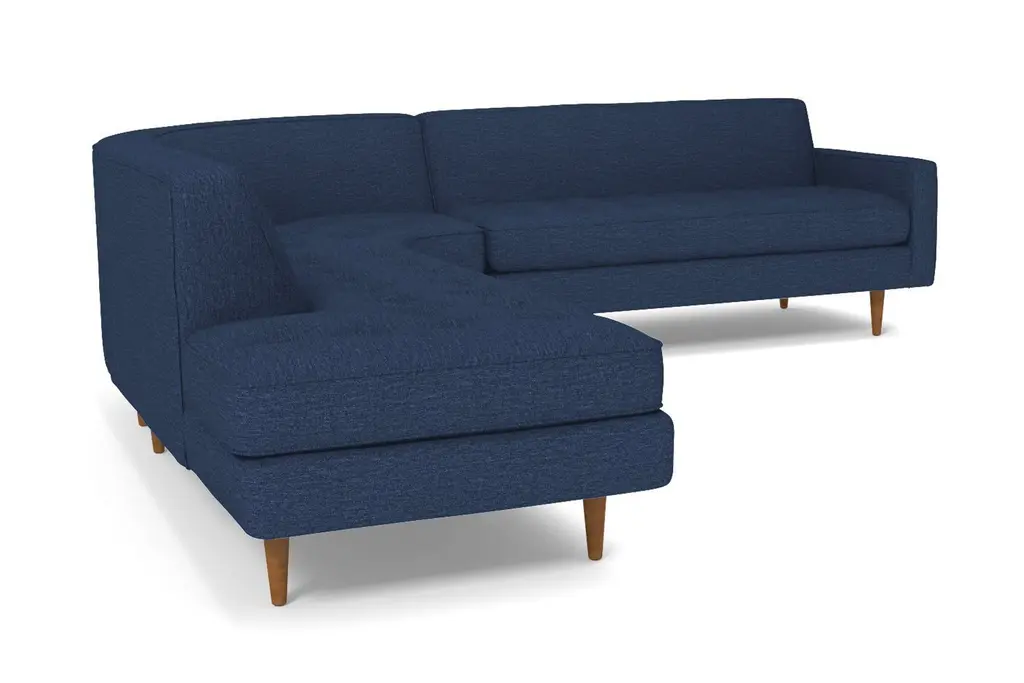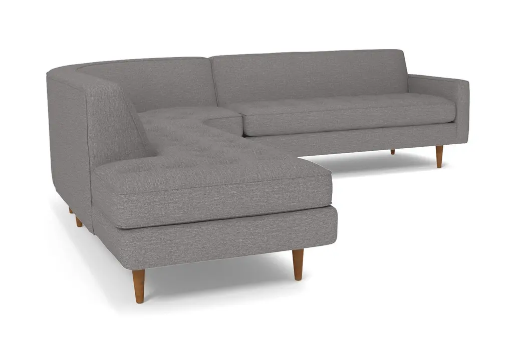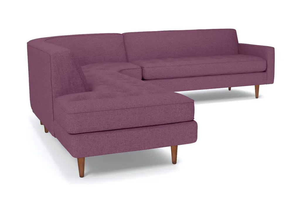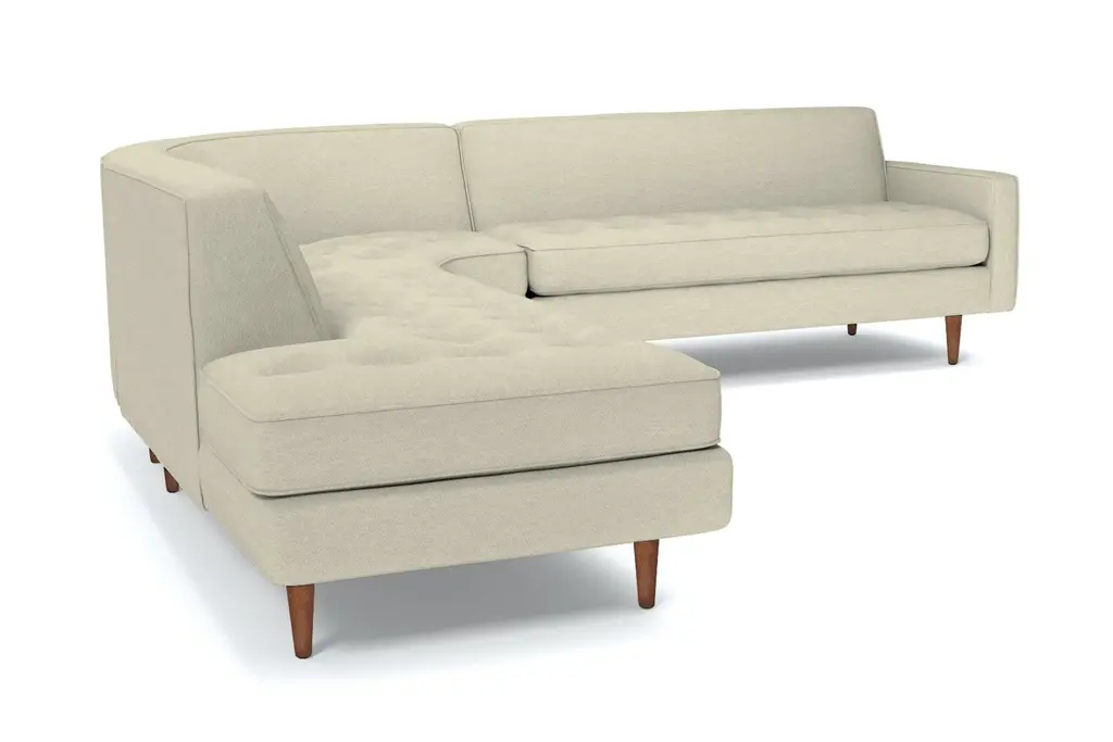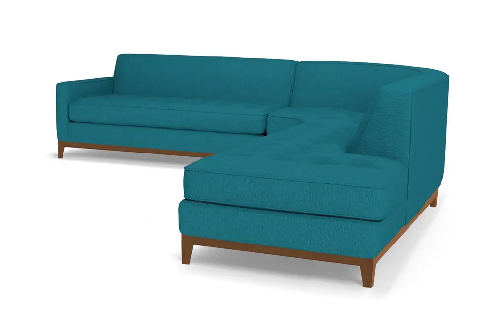The Monroe Collection from Kyle Schuneman is work of ultra-modern art and this three-piece sectional sofa steals the show. Absolutely gorgeous with its sophisticated button-tufted cushions and sleek tight back, it looks like it came straight from a classic Hollywood film set. And those curves! This sofa is perfect for sectioning off a wide-open space or creating a cozy alcove to relax and entertain. The piping along the cushions adds texture and the tapered wooden legs elevate its modern style. And, despite the fact that it's three pieces, it doesn't take up a ton of space. We have plenty of colors and fabrics to choose from, so whether you're looking for an understated piece or a retro green sectional, you'll find it at Apt2B. With a Mad Men-esque silhouette, The Monroe is a perfect way to add a hip factor to any room. The clean lines and simple shape make it perfect for any small space. It packs a big punch without taking up a lot of square footage.